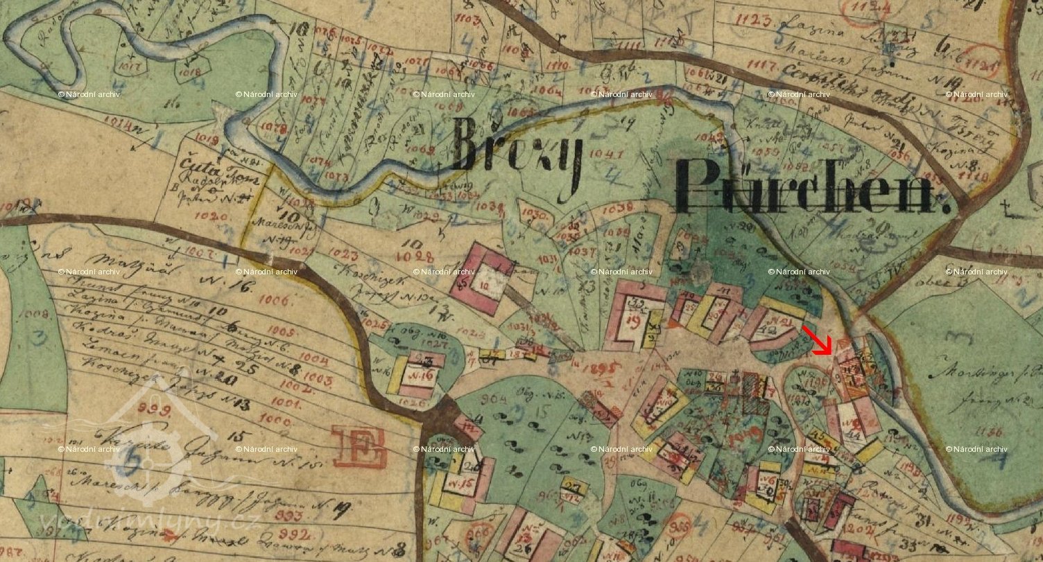 Roku 1873 koupil Jakub Murtinger mlýn jako vyhořelý na pozemku Březí čp. 1 od původního mlynáře Havla (resp. jeho příbuzných). (IK)