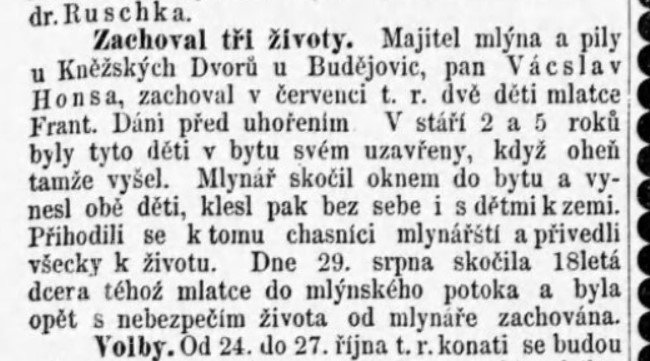 1902 zmíněn Felix Hansa, mlynář ze Suchomela (PK)