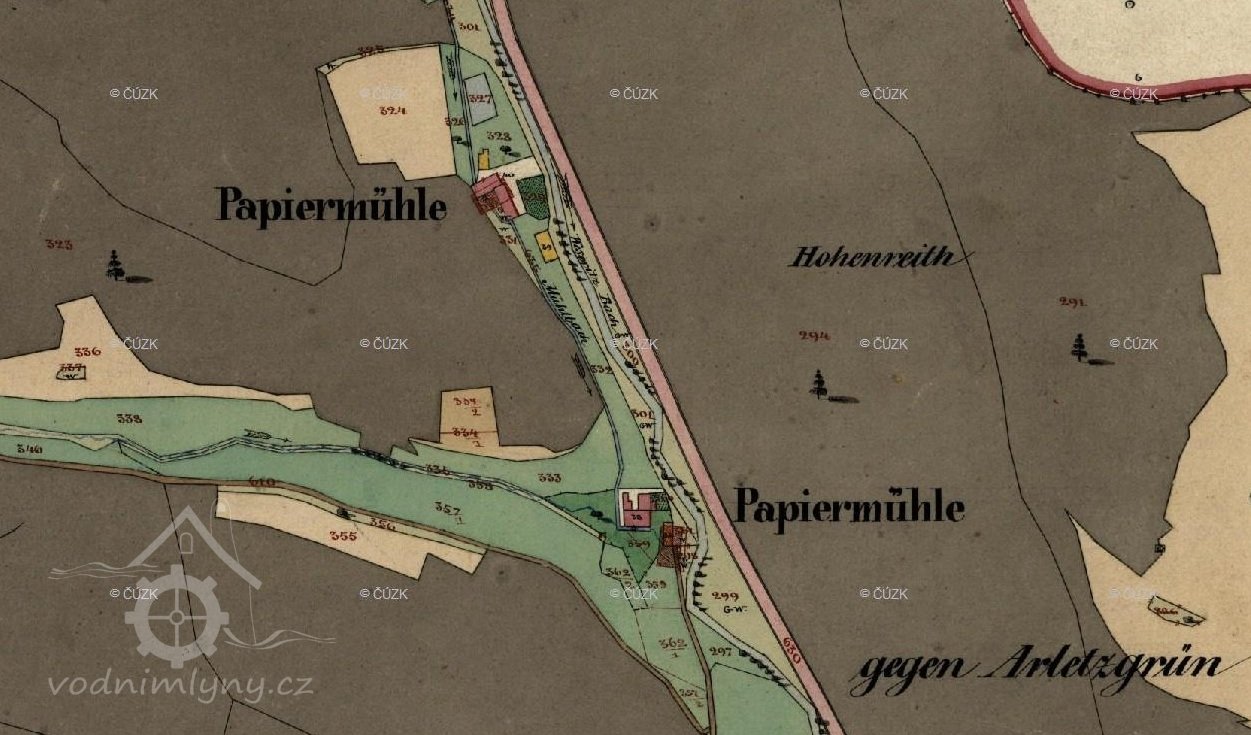 Další mlýn byl vlastně dvojmlýnem. První zmínka pochází z roku 1546, kdy jeden z těchto mlýnů (horní), fungující jako papírna, zakoupil Adam Abt. Ten zavedl výrobu silných papírů, které byly nejkvalitnějším papírem vyráběných na území Českého království. Výroba papíru se udržela až do počátku dvacátého století. Veškerá produkce byla tehdy vyvážena do města Leiden v hrabství Holland, kde se jeden arch rozdělil na dva až tři. Ze vzniklého tenkého papíru se potom vyráběly bankocetle – tedy bankovky Rakousko-Uherské monarchie. Rozborem papíru partitur bylo zjištěno, že na papír z Jáchymova psal svá díla např. J. S. Bach. Takovou perličkou bylo, že tento dvojmlýn stál na jazykové hranici. Zatímco v dolní pile se mluvilo Egerštinou (německý dialekt z Chebska), v horní pile Abtů se hovořilo Jáchymovským krušnohorským nářečím. Horní papírna sloužila svému účelu do roku 1931. Poté byla ještě v provozu pila poháněná vodním kolem o průměru 4 metry a s kapacitou 500 litrů. Šlo tehdy o nejvýkonnější vodní kolo v širokém okolí. Z prostor papírny se stala lázeňskými hosty z Jáchymova vyhledávaná restaurace a z Papirmühle Abt se tak stal Trinksmühle. Restaurace byla po roce 1989 obnovena a jako Restaurace U Vlčků funguje dodnes. Dolní pila byla v provozu do poloviny dvacátého století.