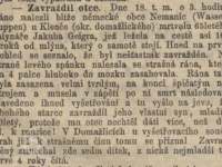 18. 2. 1874 byl mlynář Jakub Geiger zavražděn vlastním synem. (RR).