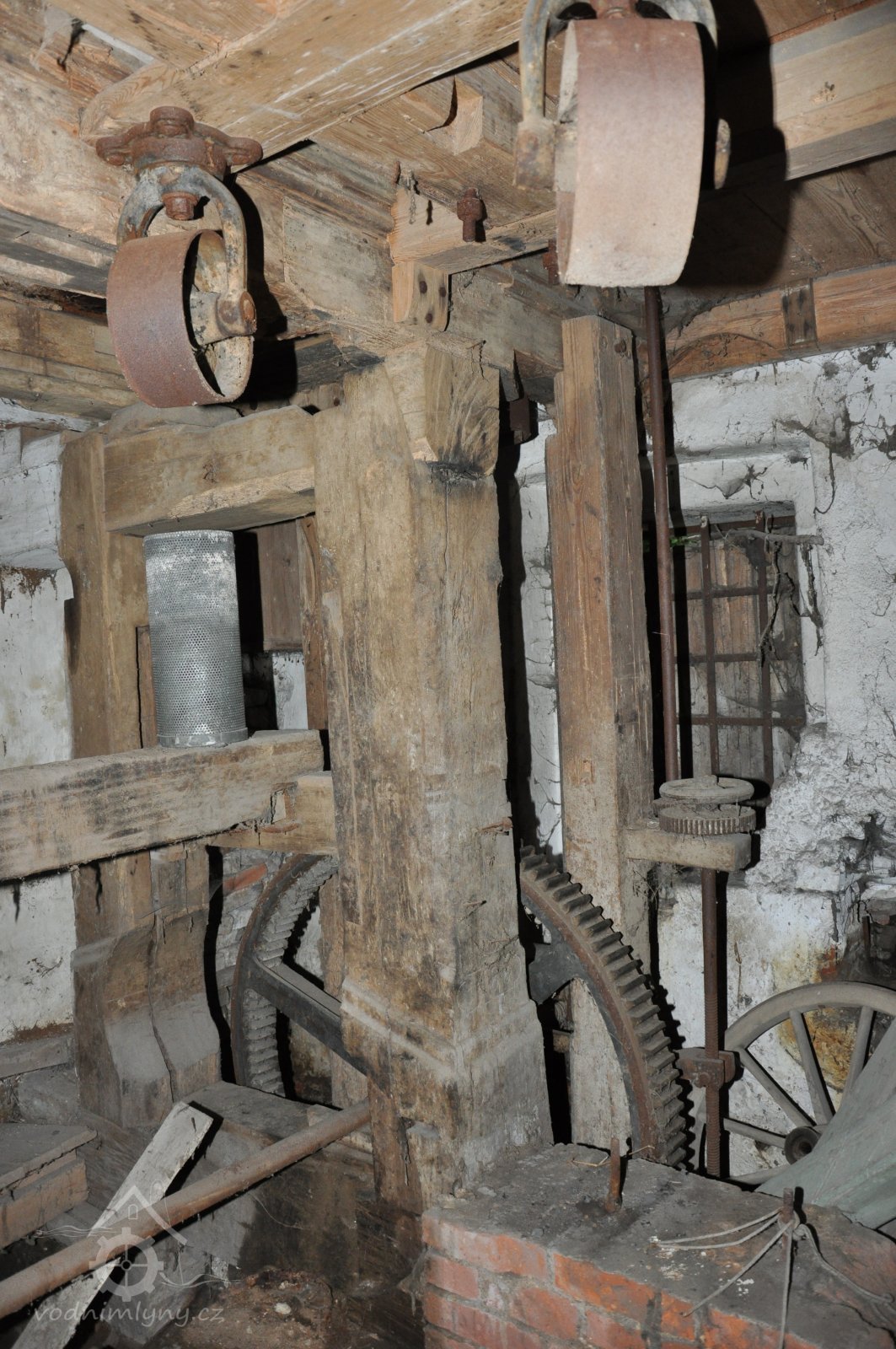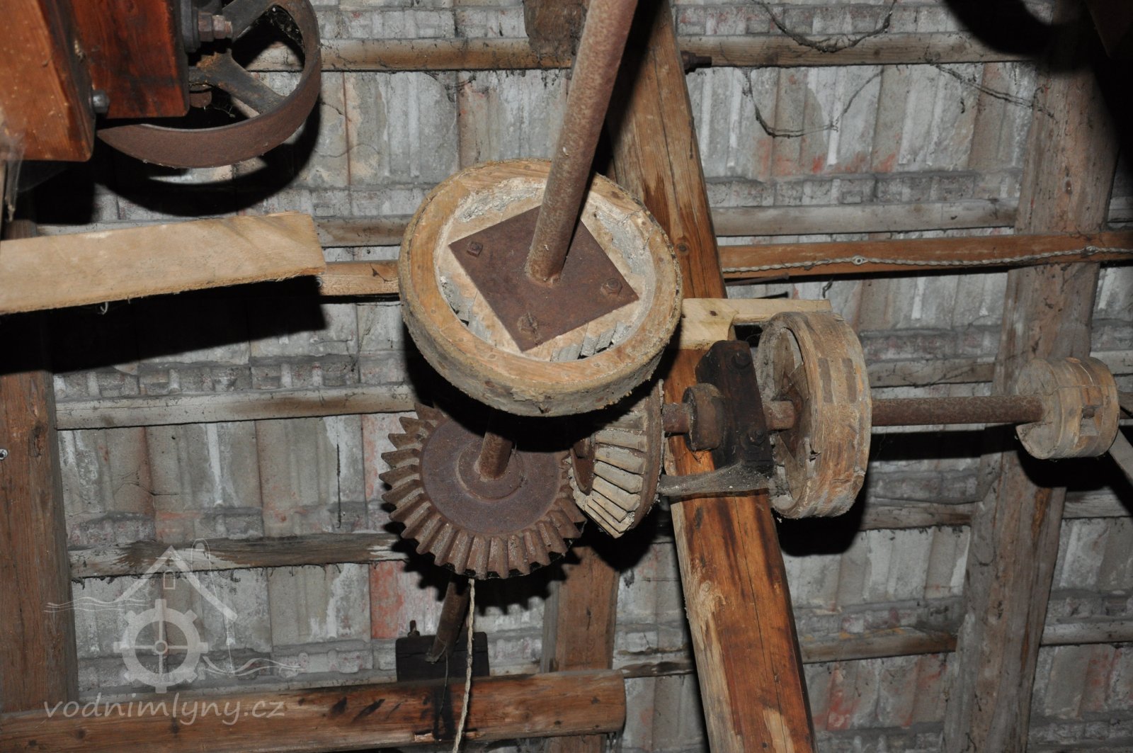 pohon 1. kamenného mlecího složení, 2015, © David Veverka, (Prvky na obrázku: transmise, řemenice, převody)