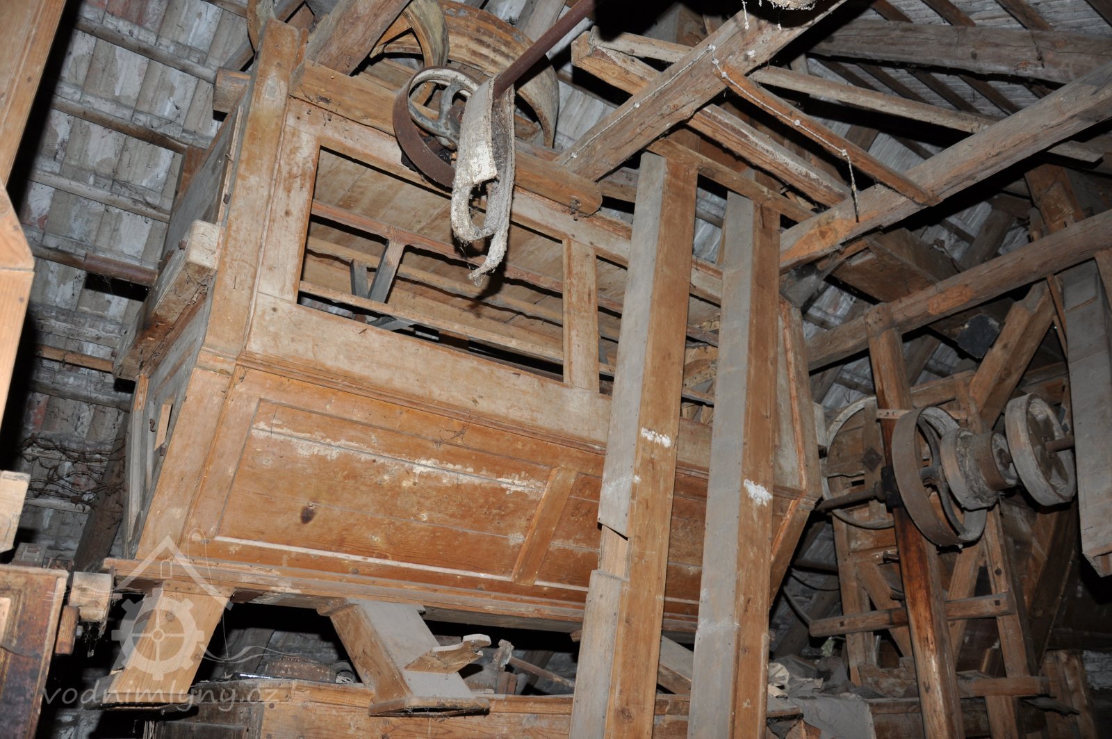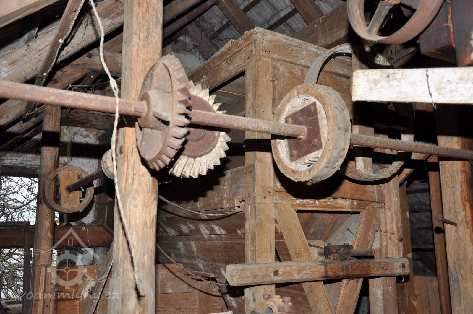 pohon 2. kamenného mlecího složení, 2015, © David Veverka, (Prvky na obrázku: transmise, řemenice, převody)