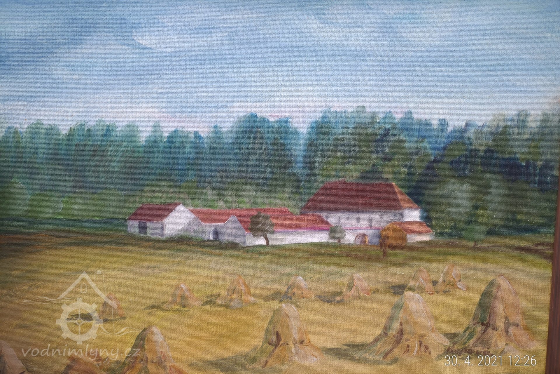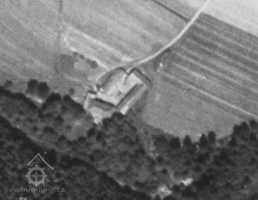popis zřejmě v době 1. rep. : Budova jednoposchoďová 25 x 15 m, od jezu kolem budovy náhon na pohon vodního mlýna a pily - pila byla jednoplátová a stála proti mlýnu za náhonem. Pila pro špatný technický stav v roce 1935 zrušena. Též bylo zrušeno i vodní kolo na spodní vodu a nahrazeno turbínou. Nová pila - katr - byla postavena při čelní zdi mlýna na západní straně. Turbína poháněla mlýn i pilu. K pozemkům mlýna patřilo i právo rybolovu (dřevěná sloupa). Od horní strany mlýna bylo hospodářské stavení, od něhož byl napravo včelín. Stál zde také vysoký tesaný dřevěný kříž s Kristem. Kronika uvádí dále, že k mlýnu patřilo 19 ha pozemků včetně 3 ha lesů, 16 ks. hovězího dobytka, 2 těžké koně, vepřový brav a hodně drůbeže. (*)