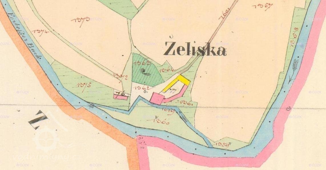 1930 - Řevňovice čp. 11, Karel Schmíd, mlýn a pila, 2 kola na spodní vodu, průtok 0,396/0,310 m3/s, spád náhonu 2 x 1,9m, výkon 3/2,4 HP