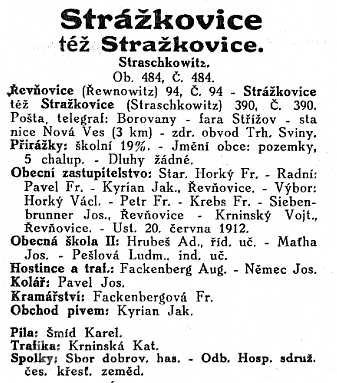 * zdroj Pamětní kniha obce Strážkovic s osadou Řevnovicemi, 1925-1967, online http://digi.ceskearchivy.cz/cs/1510/179 a následující sn.