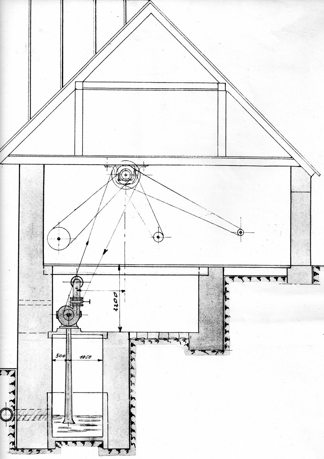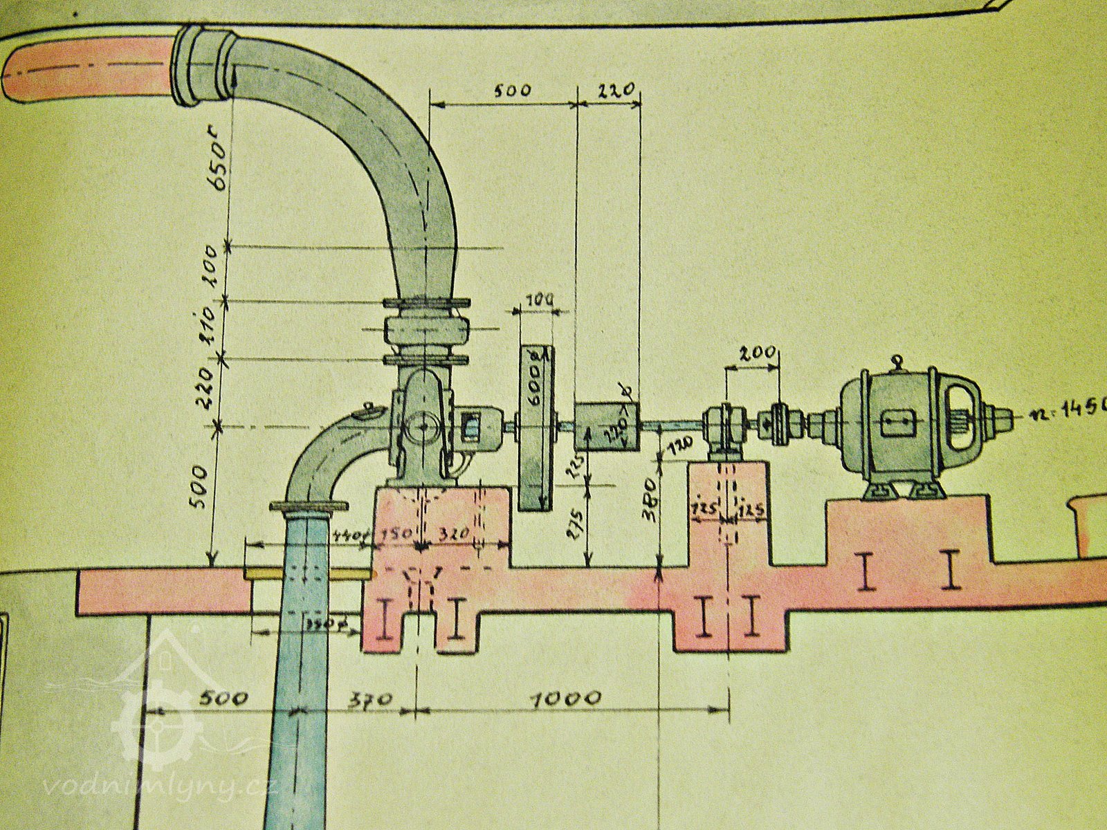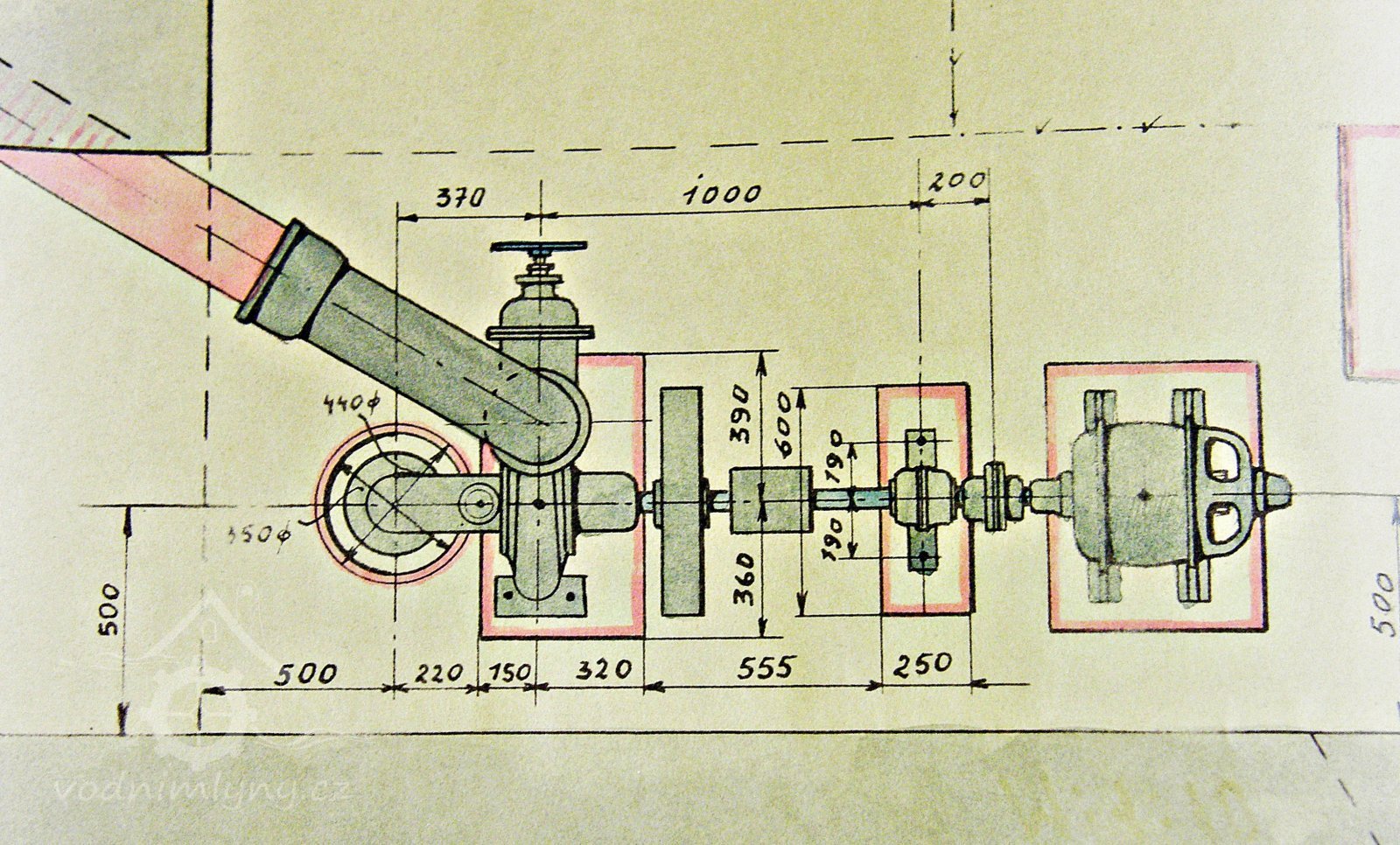 Situace umístění turbíny v objektu, 1934, © Valentin Jaeggle (reprofoto SOkA Semily, Kolssteyn)