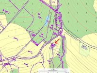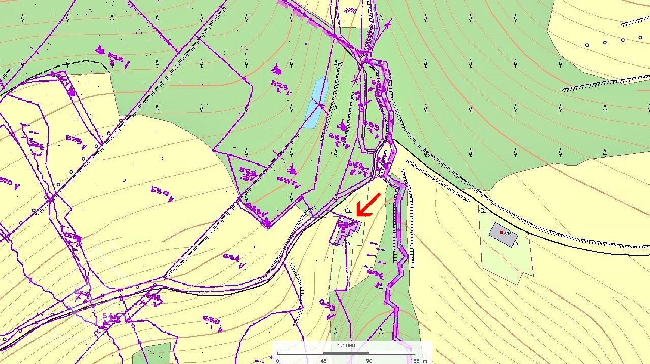 Parcely katastrální mapy užívané do poč. 50. let na podkladě současné základní mapy, cca 1950, © geoportal.gepro.cz