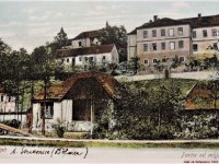 1890-1903 u mlýna pila na řezání kamenných kvádrů pomocí vody a písku, majitel Jan Cingroš z Plzně, 30 zaměstnanců