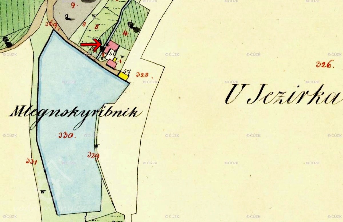 Mlýn byl postaven před rokem 1704 pod hrází později zrušeného rybníka.