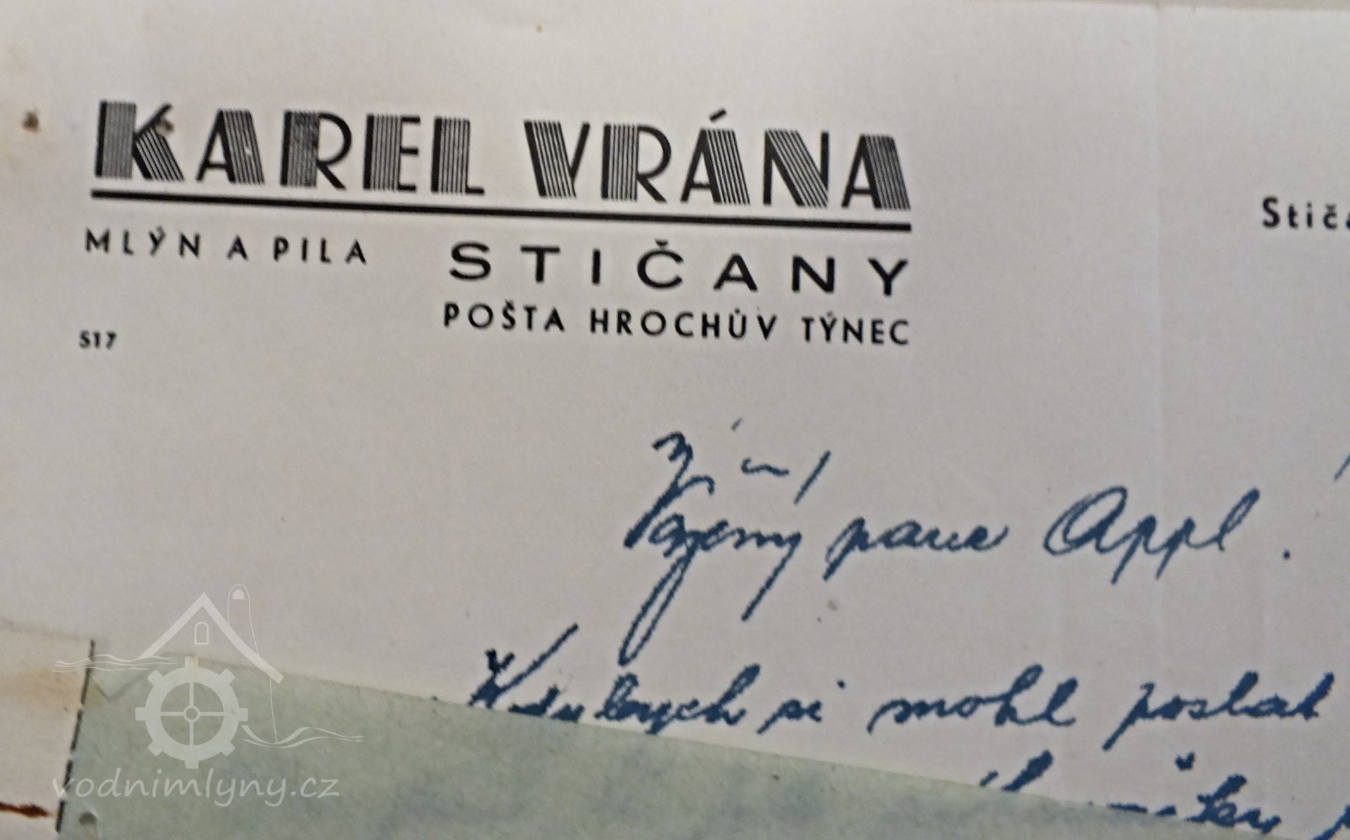 V roce 1839 měl mlýn čp. 46., majitel Petr Dostál z Vojetic