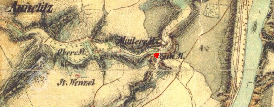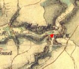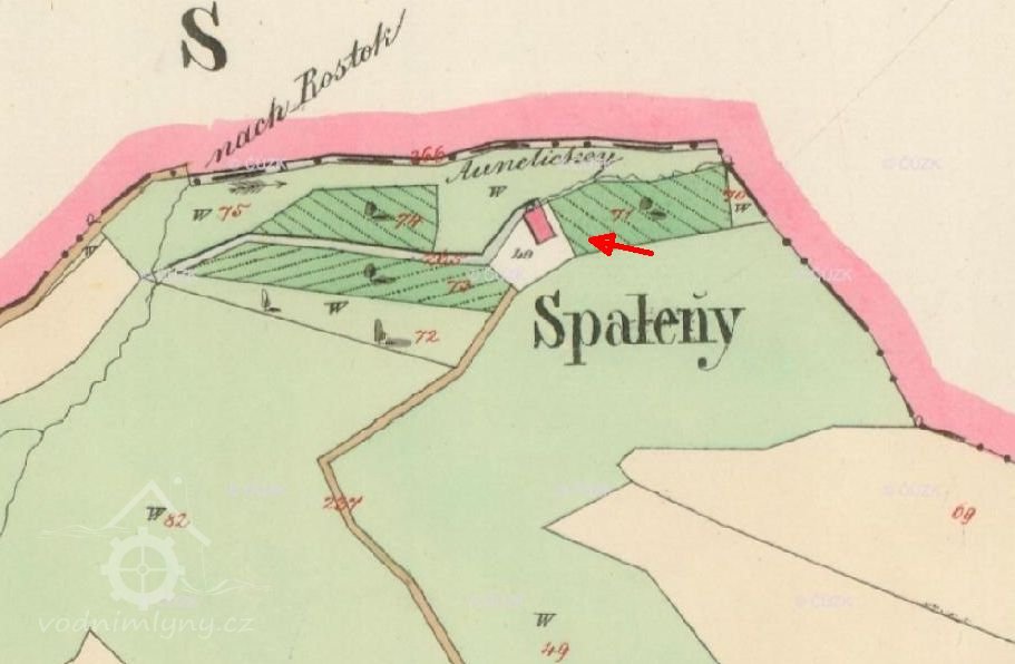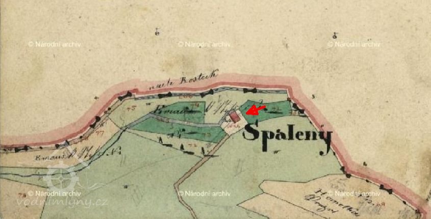 1813 Nový mlýn - Spáleník zprovozněn, emauzskému klášteru odvádí 80 zl. roční činže, laudemium v případě prodeje činí 4% ceny.