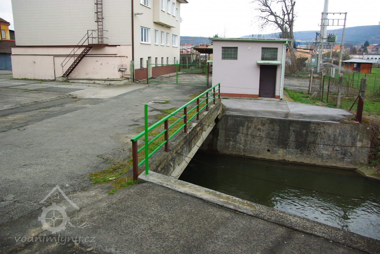 Budovy mlýnské byly v době, kdy motorem pro pohon mlýna byla vodní kola, spojený přes náhon tzv. "lednicí". Od doby postavení turbíny pak budovou dřevěnou pro tuto s místností pro hlavni soukolí, hlavní rozváděcí lanový kotouč, stavidla s tzv. "železnou zbraní" a asi od roku 1900 dynamo s příslušenstvím pro výrobu elektrického světla. Původní mlýn., pozdější hrubá strana, po levém břehu náhonu připomíná se v "Moravské vlastivědě" snad již r. 1170. Tamže později těmito slovy: "Dvůr s mlýnem a zahradou nechal klášter roku 1349 Konrádovi řečenému z Židenic a jeho manželce Elišce až do jejich smrti". (Je míněn klášter králové Sv.