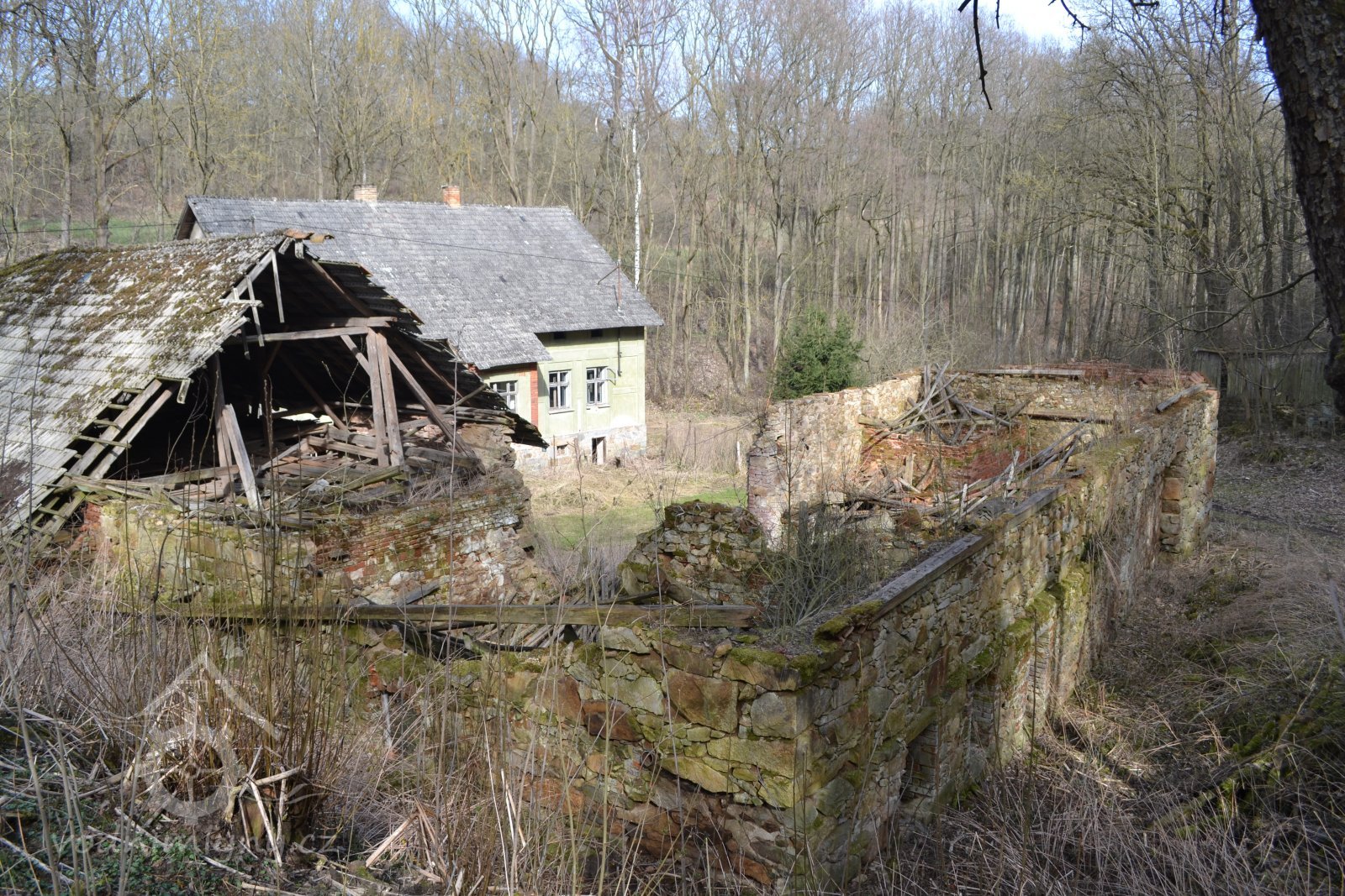 1654 u mlýna 14 strychů polí a louky na 3 fůry sena, vrchnosti platí z polí 1 zl. 7 kr.
