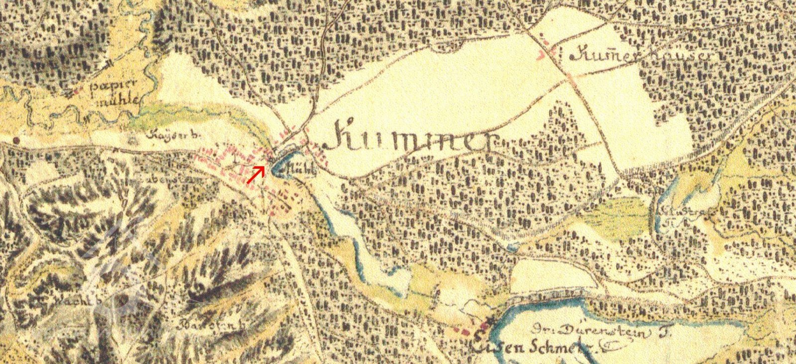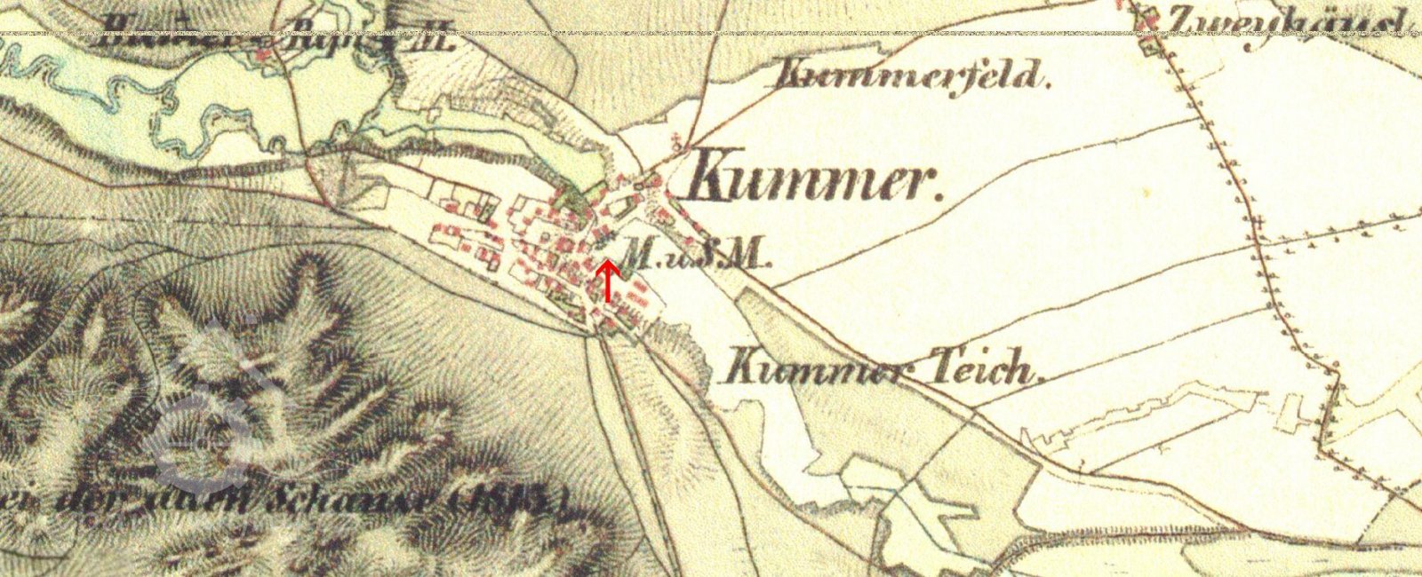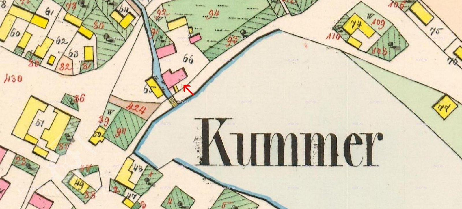 V roce 1930 byl majitelem mlýna a pily Ant. Motz. Obec Hradčany se nazývala Kummer, později Kummer am See, Hradčanský potok a rybník je uváděn jako Kummer.