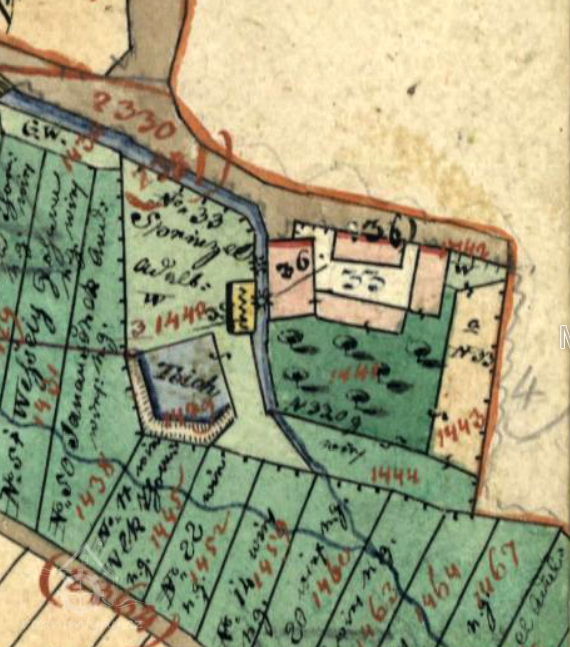 Na indikační skice z roku 1835 je jeho majitelem Adalbert Sprinzel a mlýn má dvě kola. Na císařském otisku ze stejného roku kolo jen jedno. Na mapě 2. voj, mapování je nazýván ,,Caizaner či Czizainer Muhle".