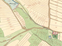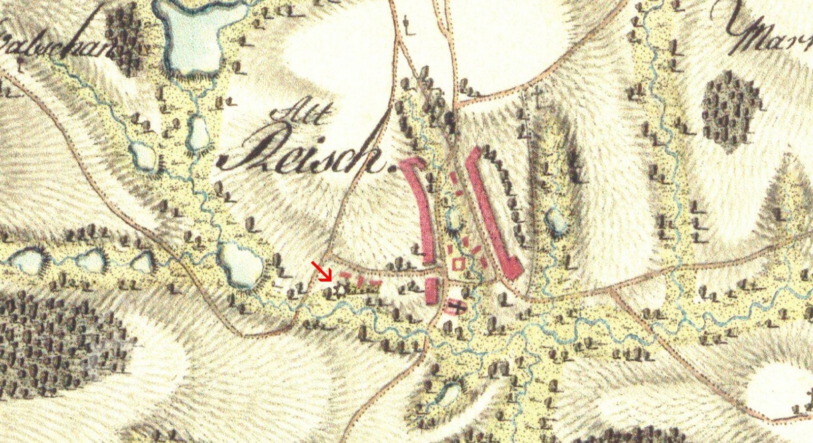 Mlýn nebyl poháněn z malého rybníčka u něj, ale poměrně dlouhým, dnes již neexistujícím náhonem z Mlýnského rybníka - viz Císařský otisk.
