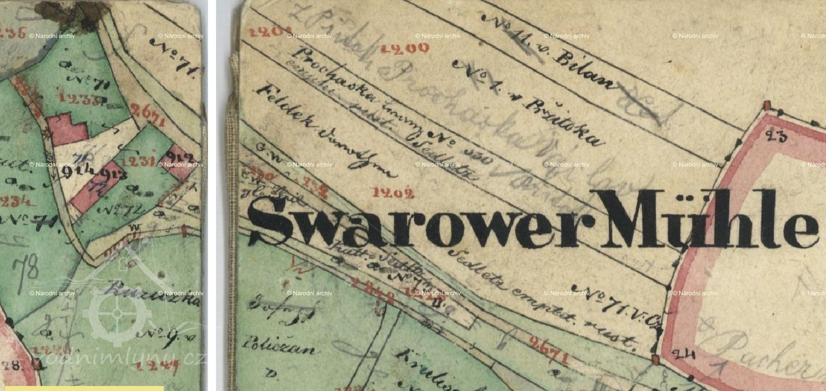 Feldekův, Svárovský mlýn; Zabarnowsky, Swarower Mühle,