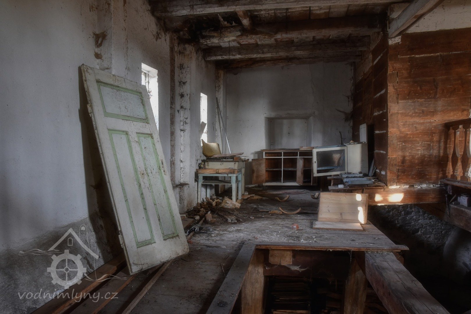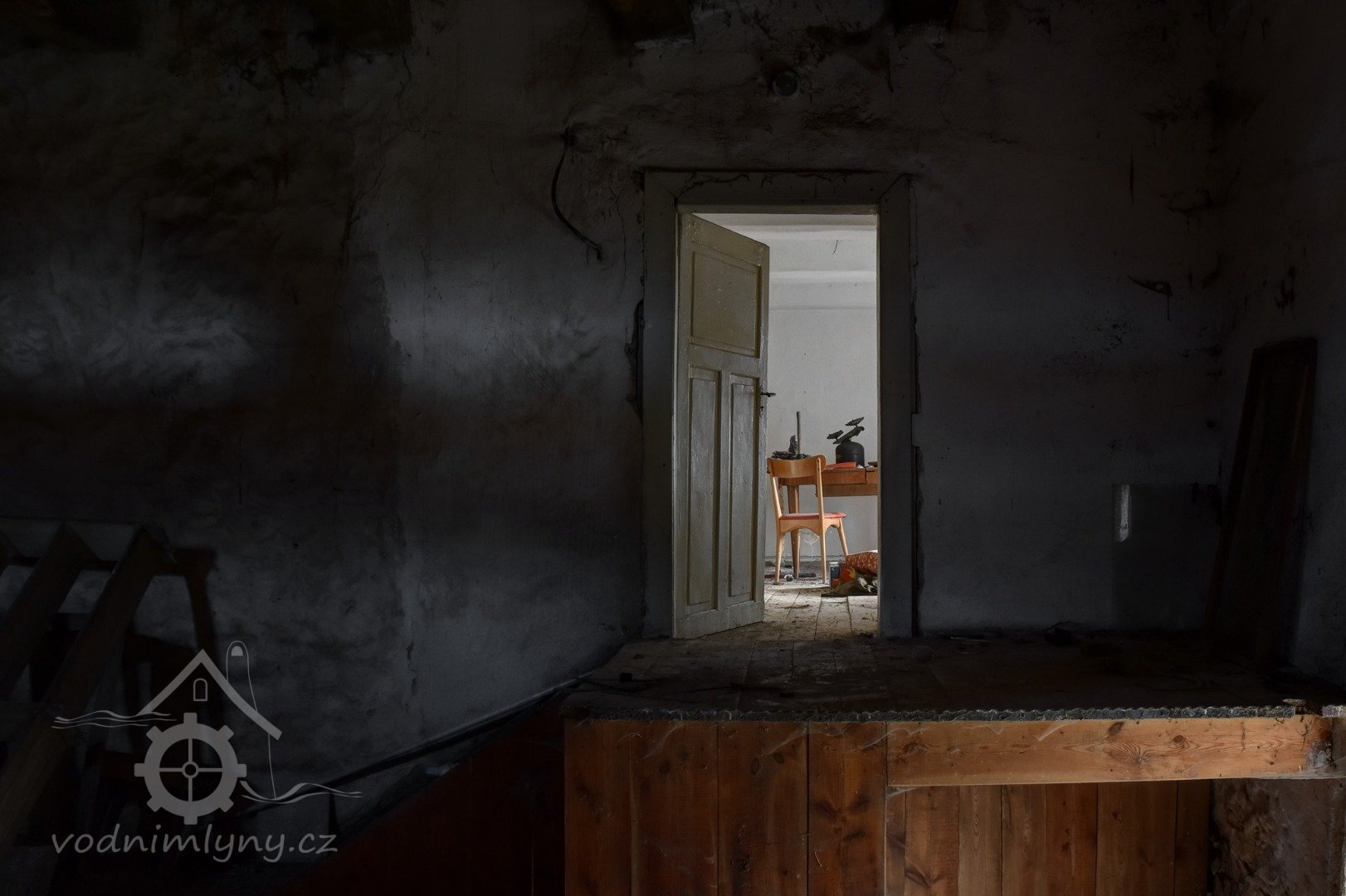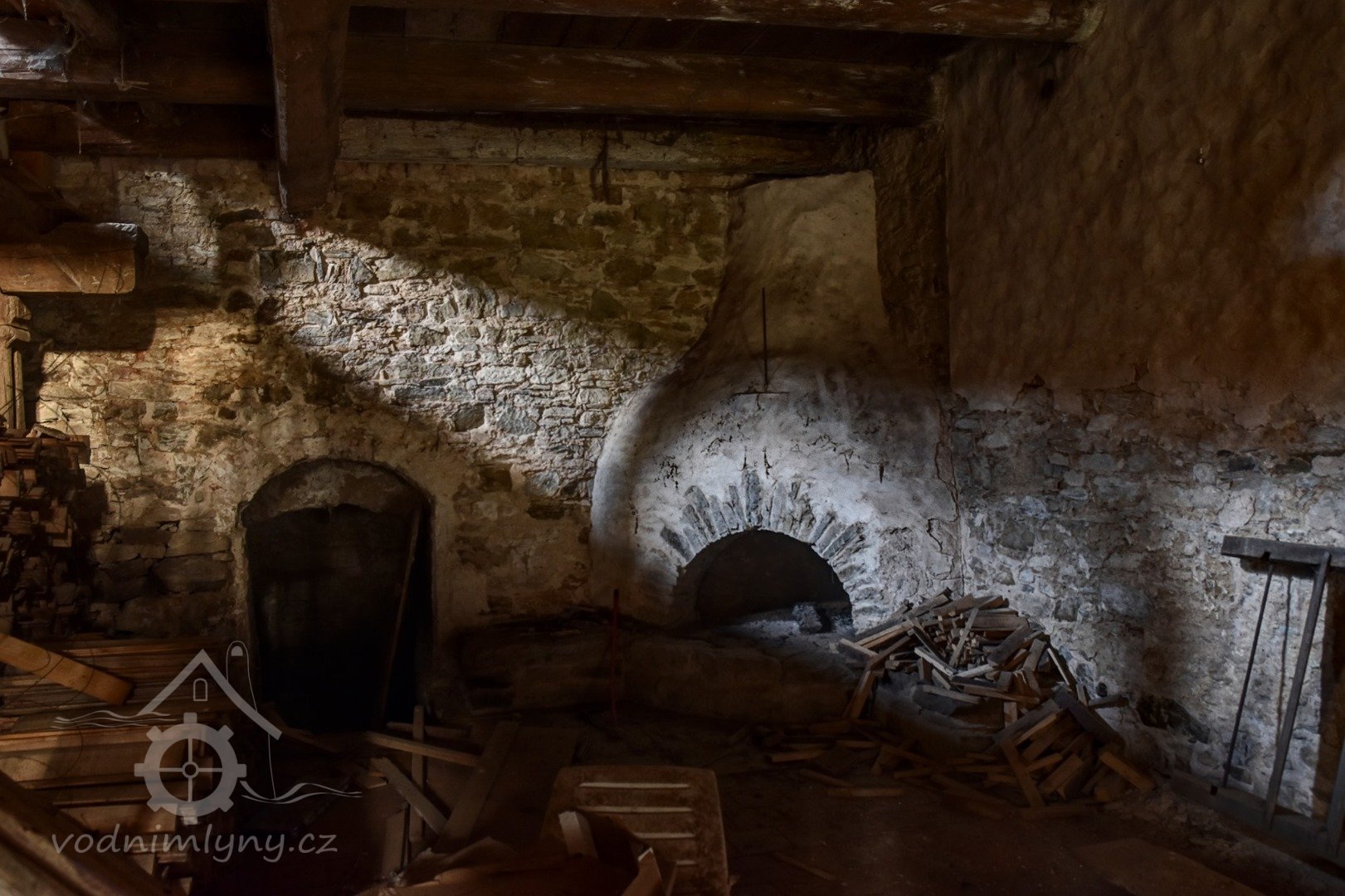 Na dvojpodlažní mlýnici navazuje obytná část s prvním patrem, které tvoří srub s barokními malovanými stropy.