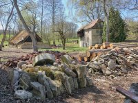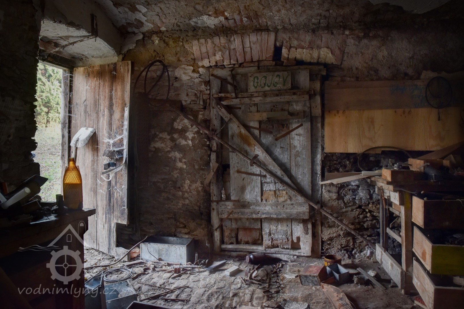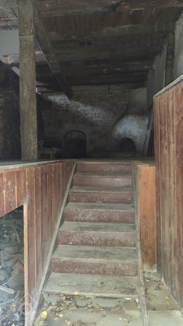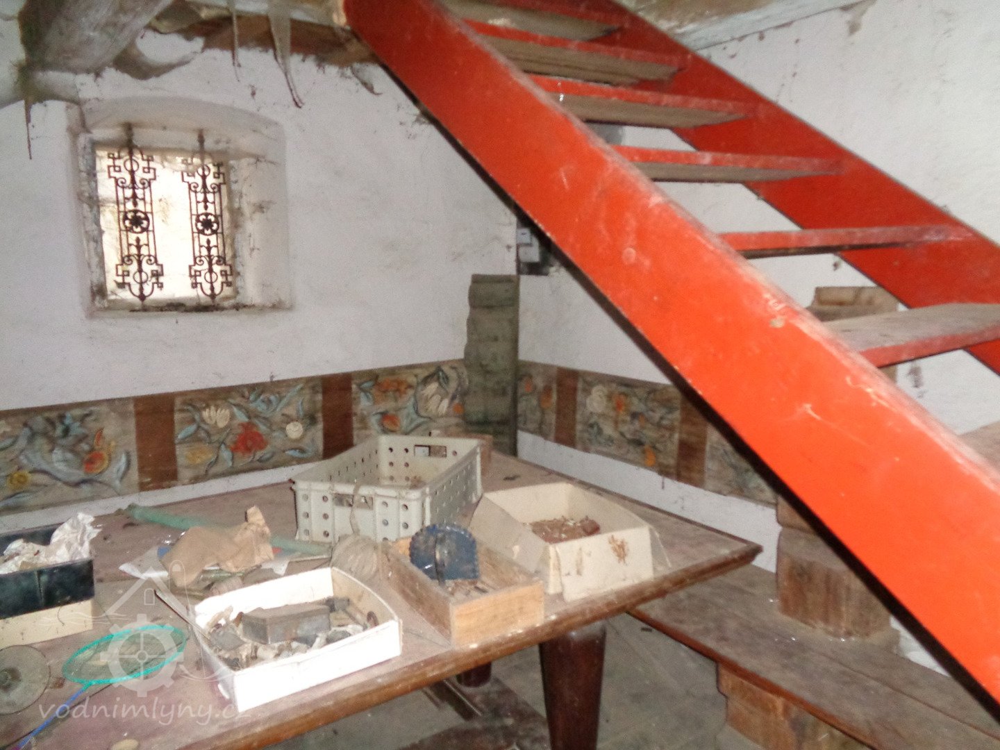 Na dvojpodlažní mlýnici navazuje obytná část s prvním patrem, které tvoří srub s barokními malovanými stropy.