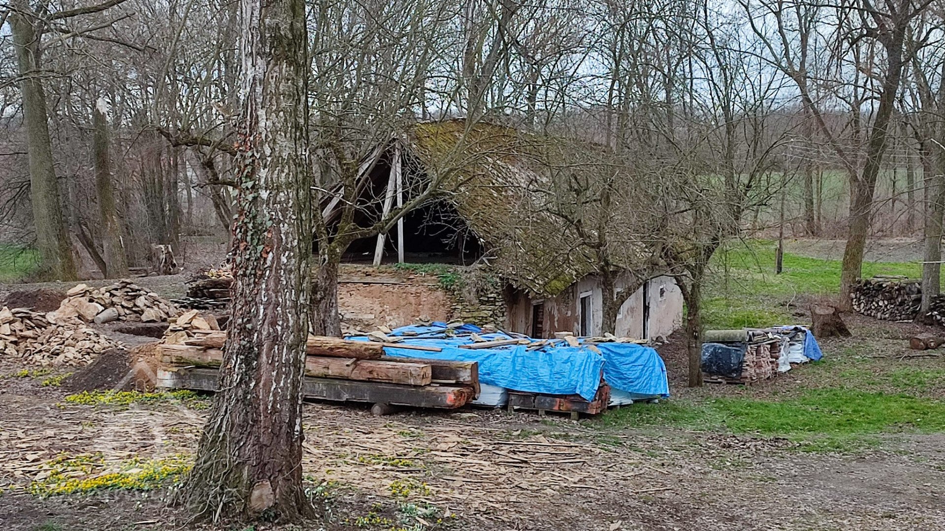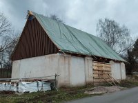 Střecha sedlová, skosena valbou, kryta bobrovkami.