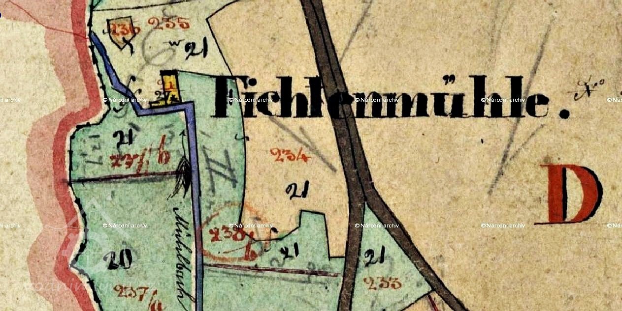 ve mlýně vypomáhá Antonín Fritsch, syn Matěje Fritsche ze Smrkového dvora čp. 21, m. Anna Marie (6.9.1819), dc.Ondřeje Kneÿssla z Dorschnerova mláýna v Bystřině čp. 22