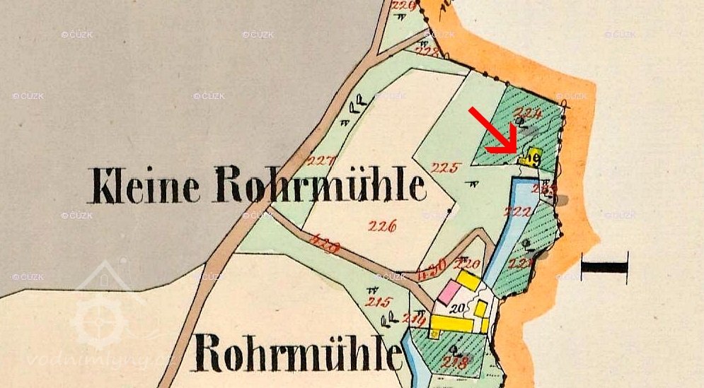 O mlýně příliš zpráv neexistuje. Zaznamenán je už 18. století a v první polovině 19. století stál na pozemku sousedního Horního mlýna čp. 15. Vlastníkem byl Johann Scharf. Po té mlýny ještě dlouho existovaly současně. (PŠ)