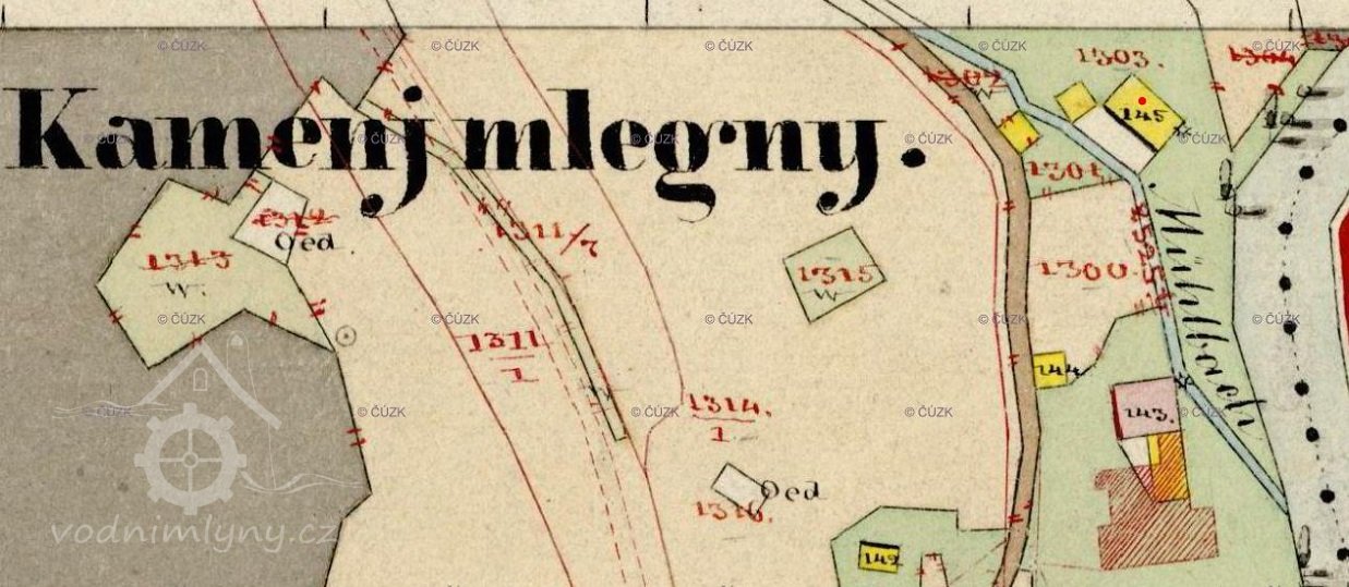 Mlýn byl postaven Janem Grussem (1634-1694), se svolením hraběte Desfourse, roku 1661. (PŠ)