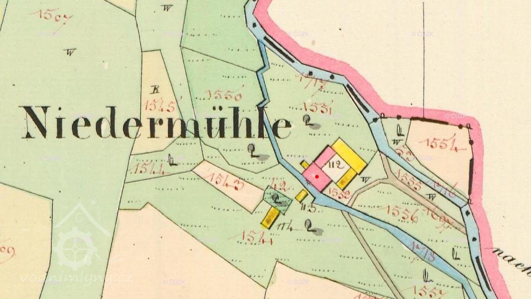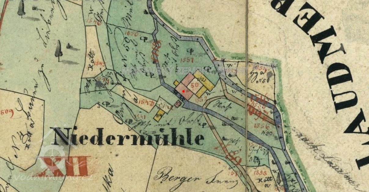 1930 šrotovník v Luboměří č.p. 50 vlastní Adolf Saner, funguje kolo na horní vodu s výkonem 6,88 kW.