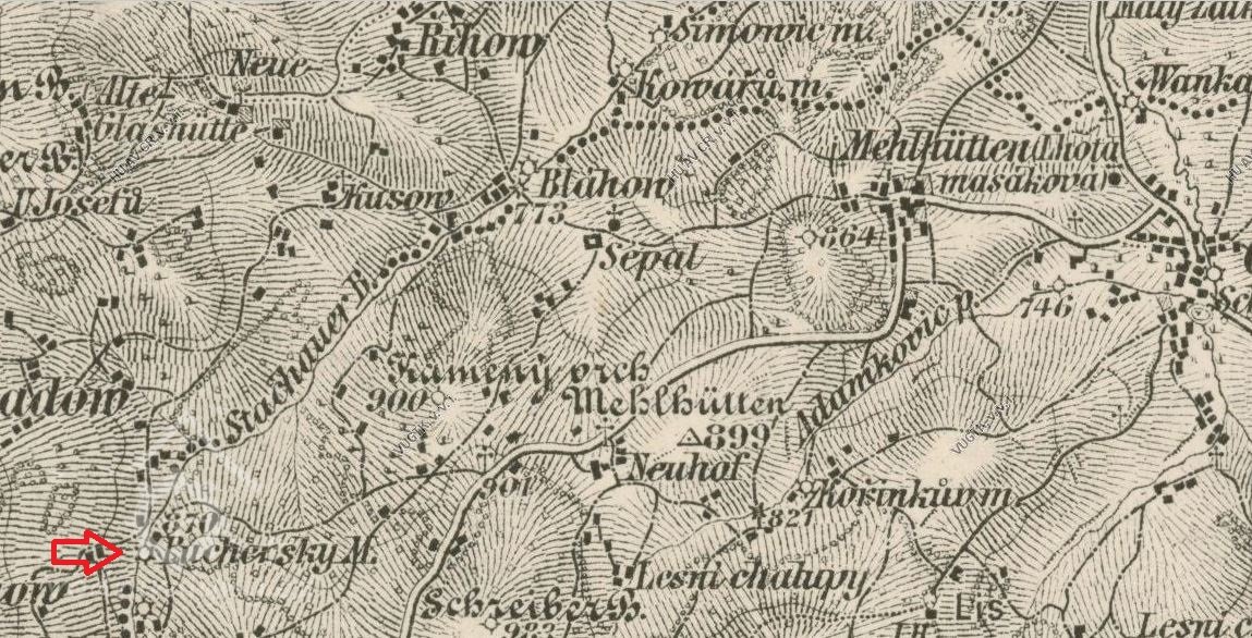 Jednalo se o dům čp.71/st.p.93 v katastrálním území Masákova Lhota.Je zobrazen na mapě Stabilního katastru :Čechy-4514-1, mapový list č.004. Původně zde byla stoupa na drcení křemene/"Pochermühle""Pochwerk", /.Křemenný prach byl dodáván do blízkých skláren.Po ukončení činnosti skláren byl objekt rekonstruován a byla zde také pila.V listinách je nemovitost uváděna jako:"Mlýnská usedlost čp.71".Stručně k vlastnictví: