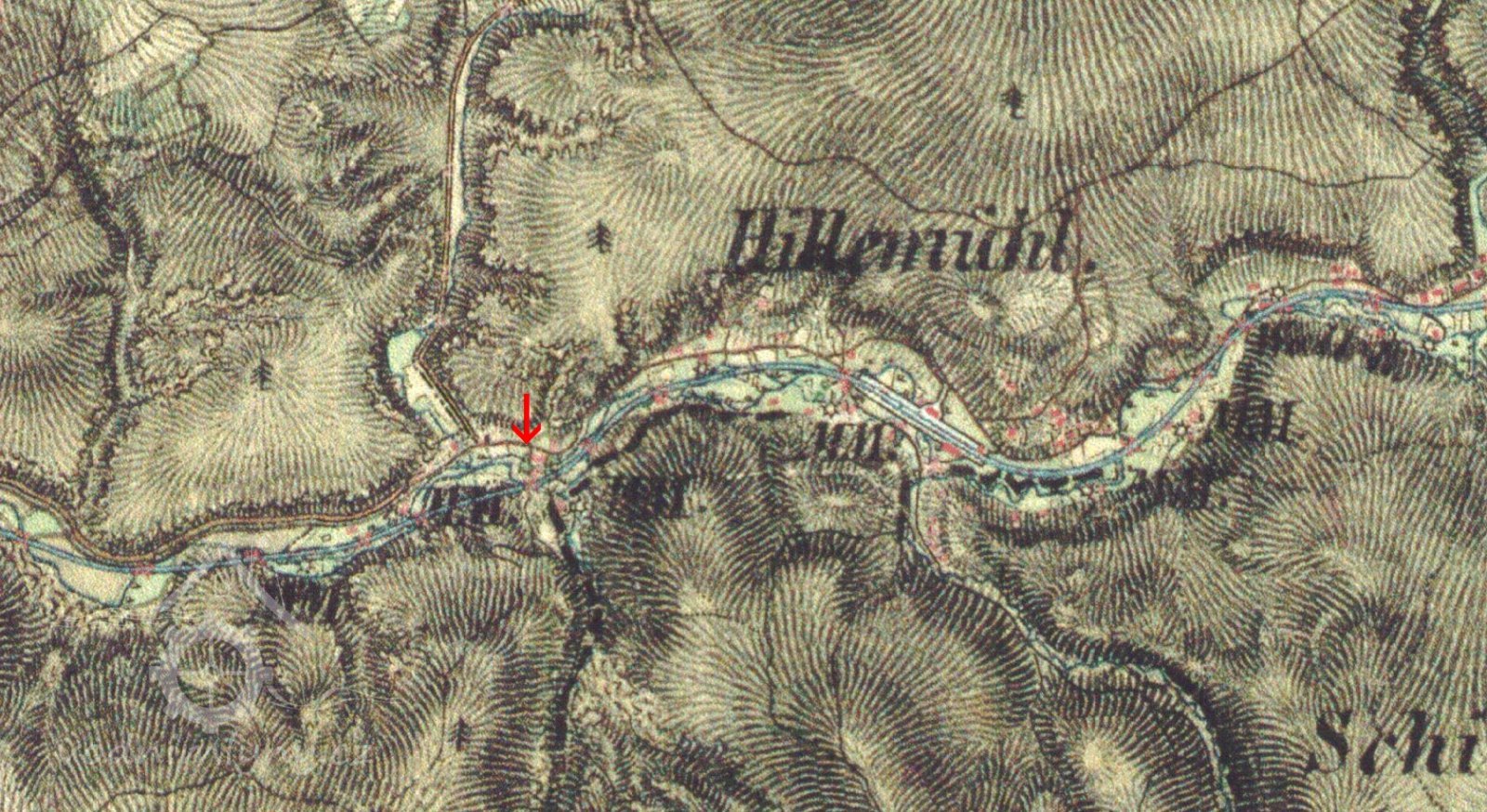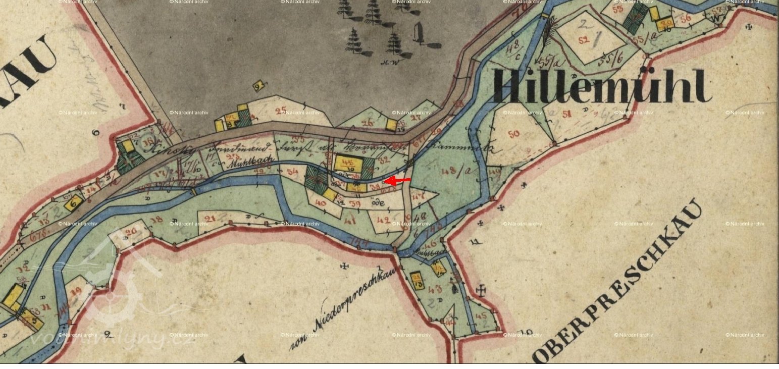 Podle ortomapy z r. 1953 stála pila samostatně. Na místě pily jsou v zahradě zarostlé kameny.