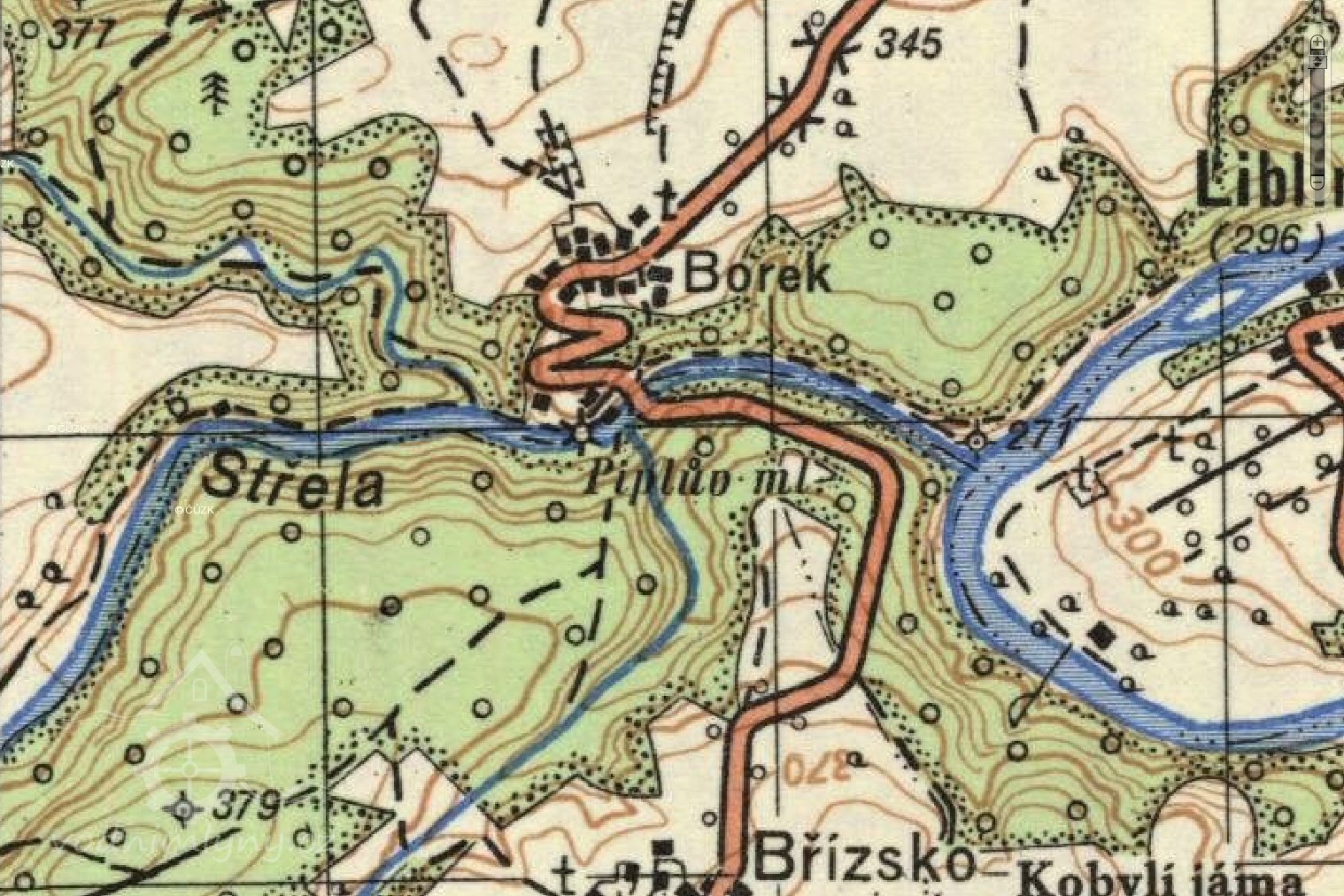 mlýn ne nachází přibližne 850m od středu obce Borek