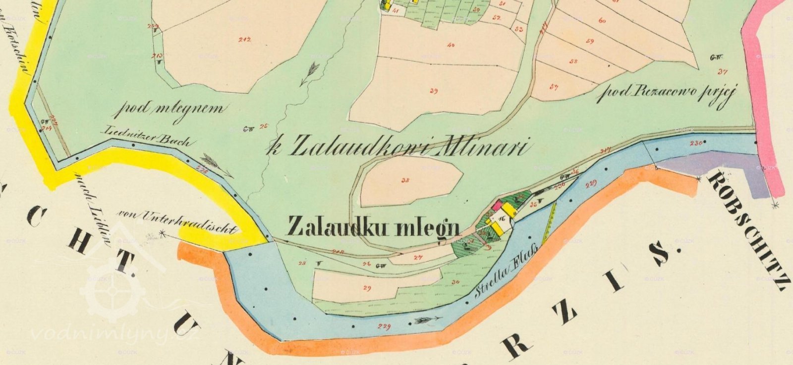 1596 Jeroným st. Hrobčický na Manětíně kupuje krašovské panství - uveden mlýn Žaloudkovský se šenkem svobodným