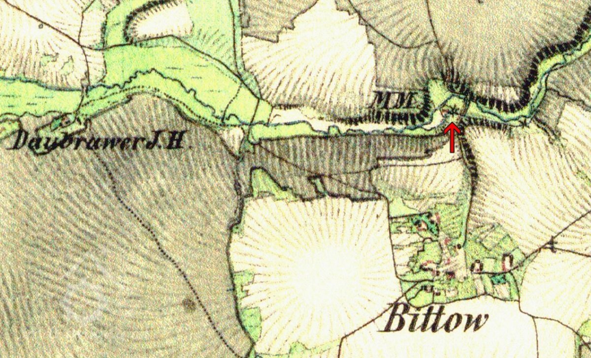 Při okresní silnici 3.tř. spojující obce Záhostice a Radenín, v údolí Turoveckého potoka stojí objekty Bítovského mlýna. Mlýn je bez technologie, upraven k bydlení
