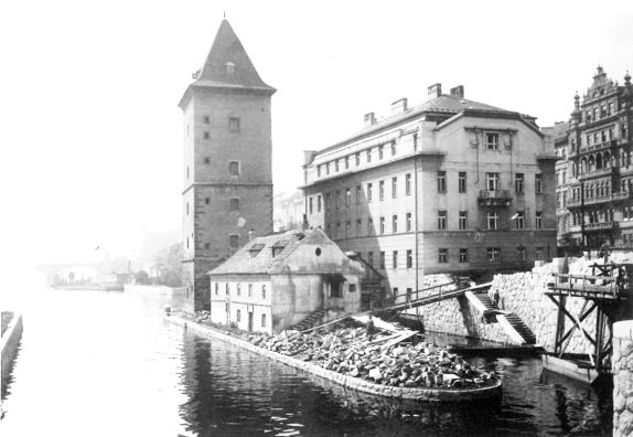 1483 – pražská obec povolila mlynáři a pekaři Janu Petržílkovi postavit při Jezuitském ostrově (dnes Petržilkovský) na Vltavě u smíchovského břehu „na místě spáleného mlýna mlýn nový“. Vedle mlýna postavila obec dřevěnou vodárnu, která byla umístěna vně hradeb Malé Strany.