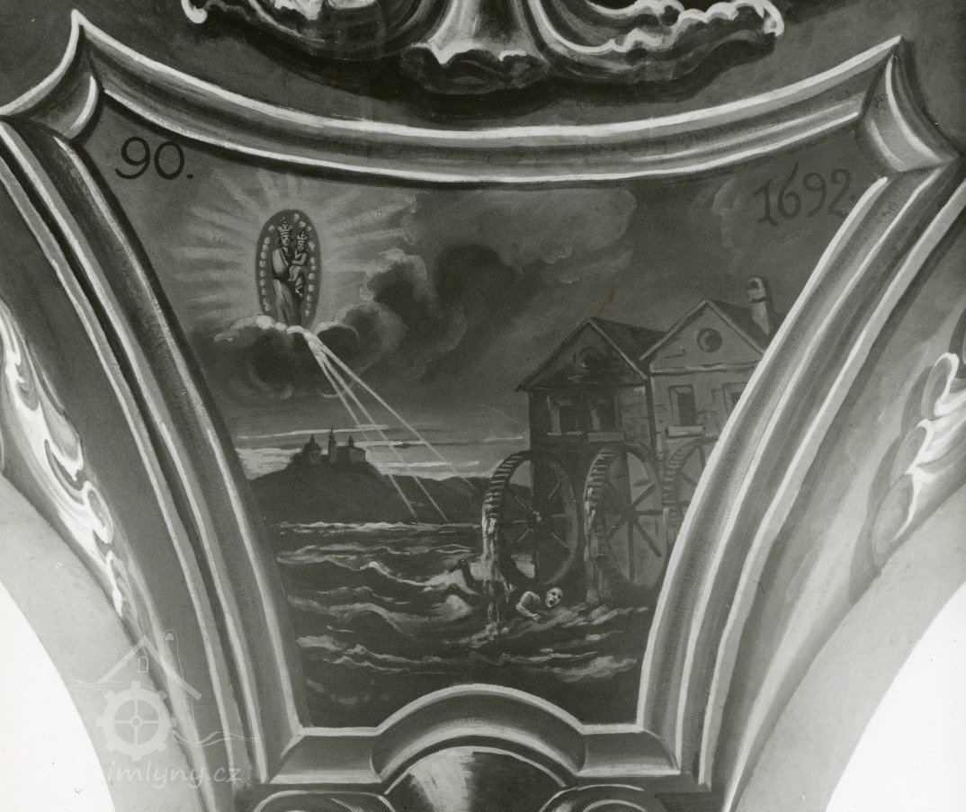 1641 dřevěné části mlýna vyhořely, shořelo i vodní kolo, na místě zničené části vznikla 1642 nová pila a soukenická a jirchářská valcha