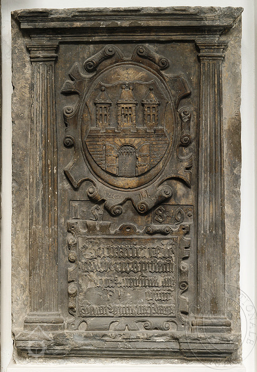 1580 mlýny znovu postaveny, pamětní deska (dnes uložena v lapidáriu)