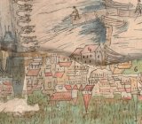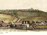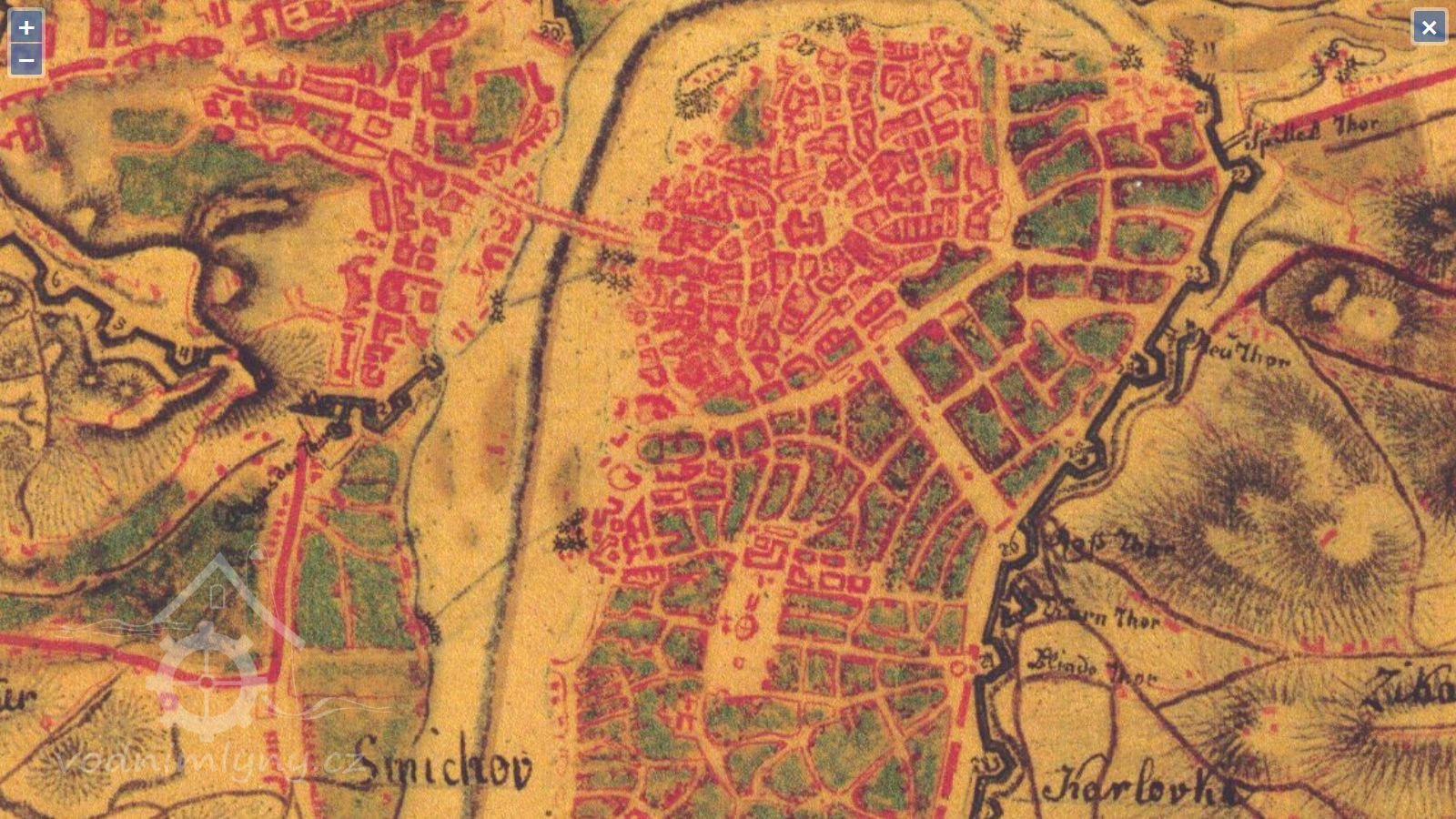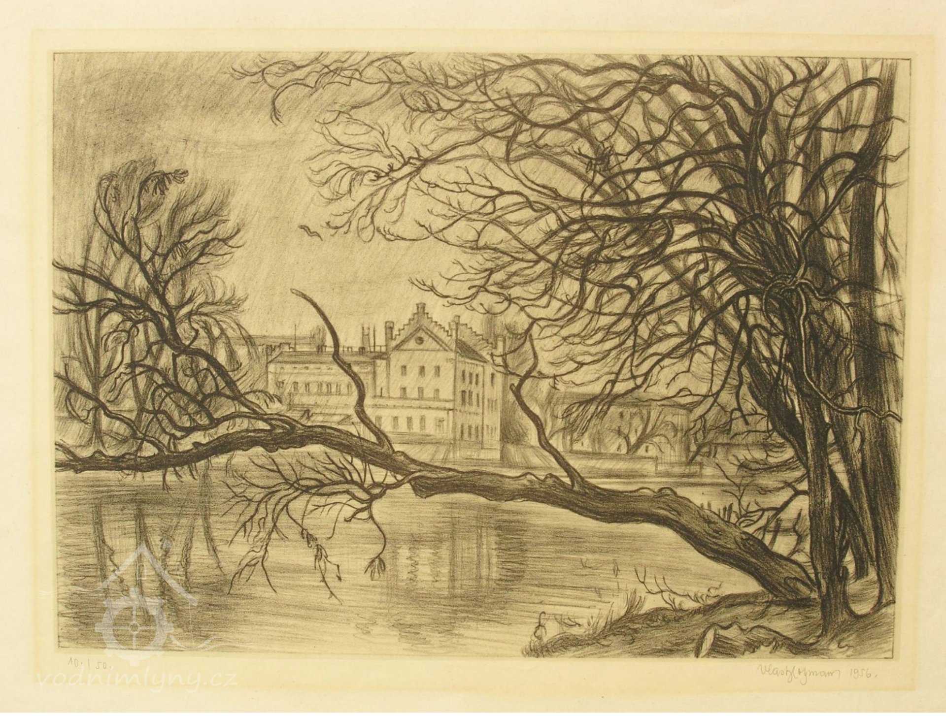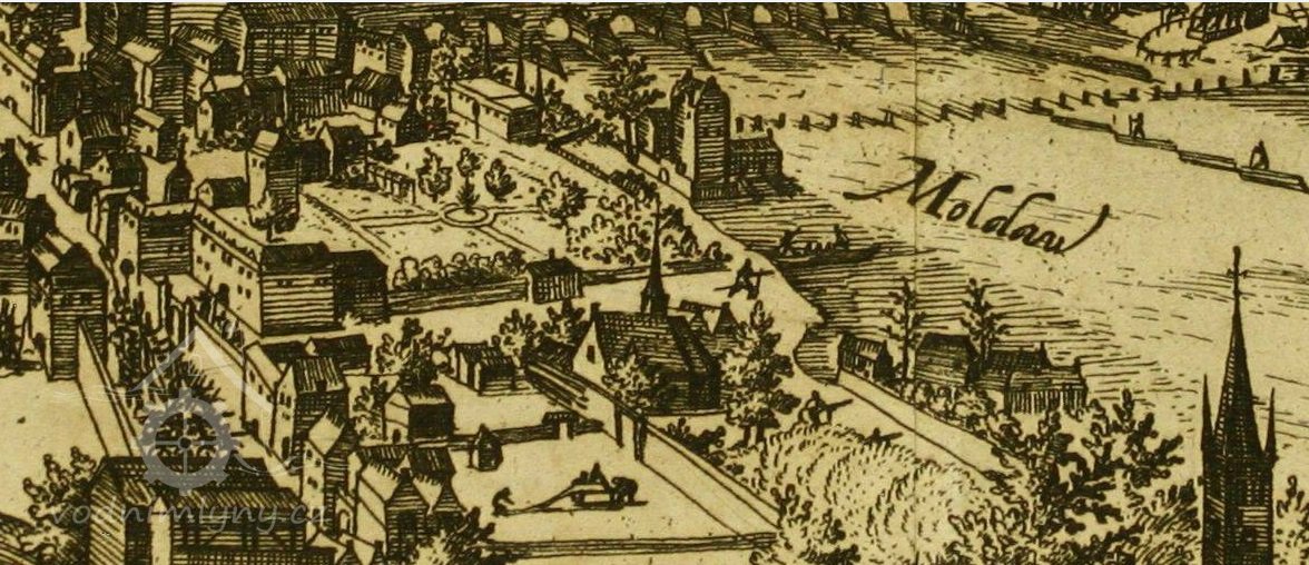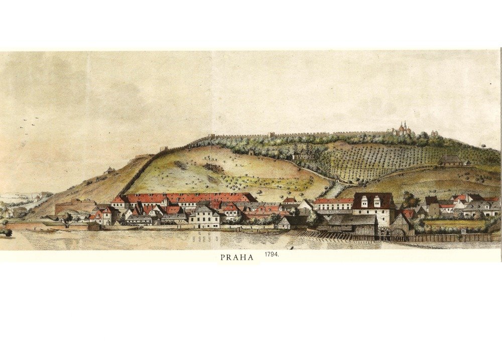 1606 na van den Boscheho prospektu Prahy mlýn zachycen v podobě, jaká se dochovala až do poč. 19. stol.