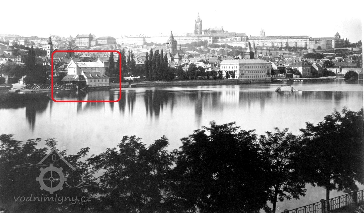 1872 část mlýnů přestavěna na parní pohon, postaven nevkusný vysoký komín, hyzdící panorama Malé Strany a Hradčan.