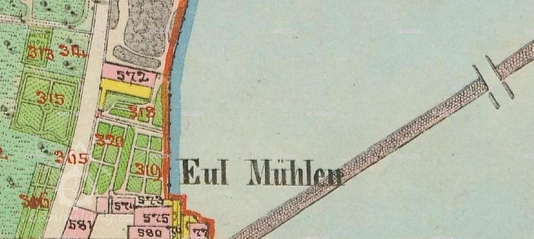 1768 čp. 318  (novou mlýnskou boudu, pilu, domek pro mlynáře, kolnu na prkna, 1/2 svinských chlívků, 1/2 zahrady a dvůr) emfyteuticky zakoupil mlynářský mistr Johann Dick (Jan Dík)