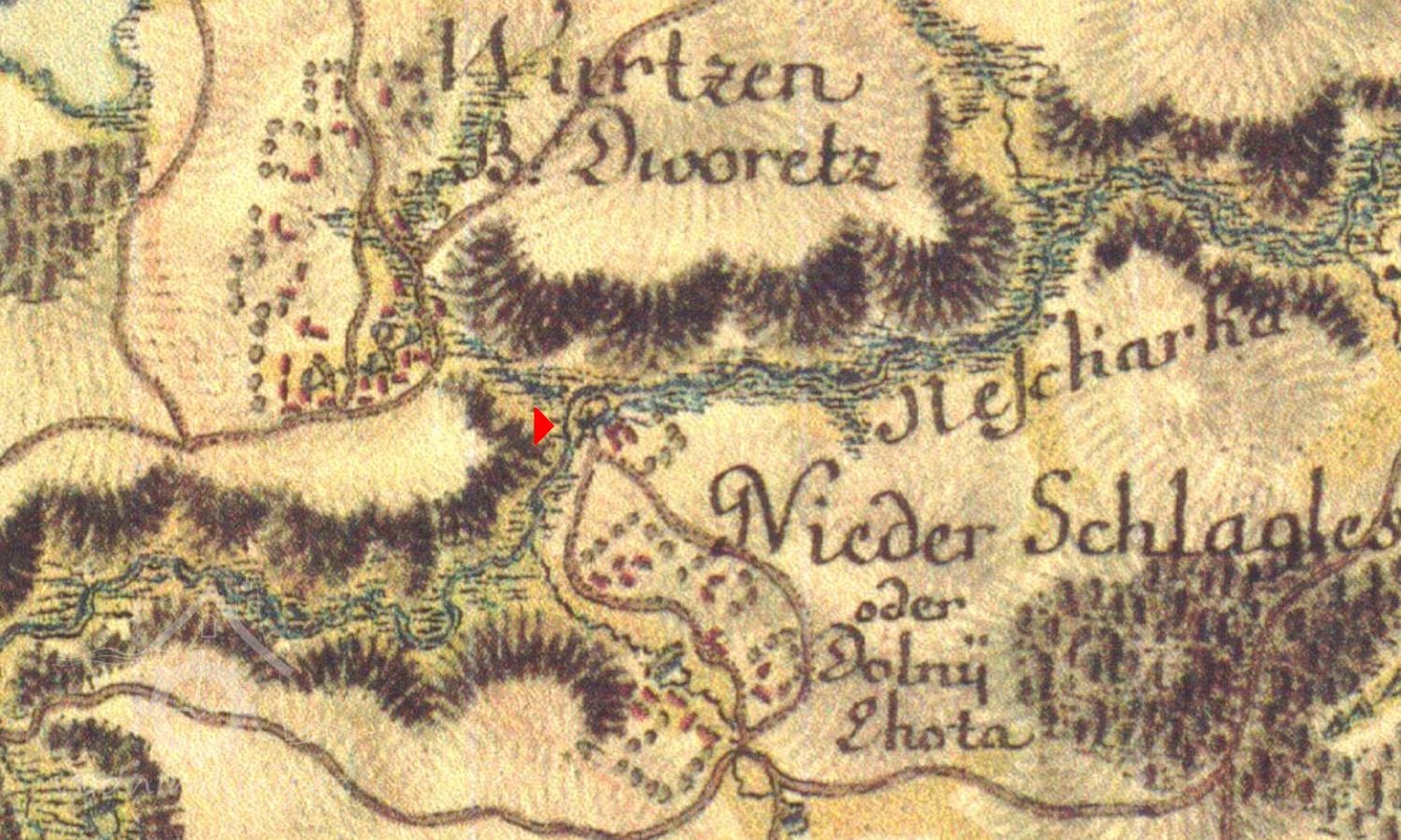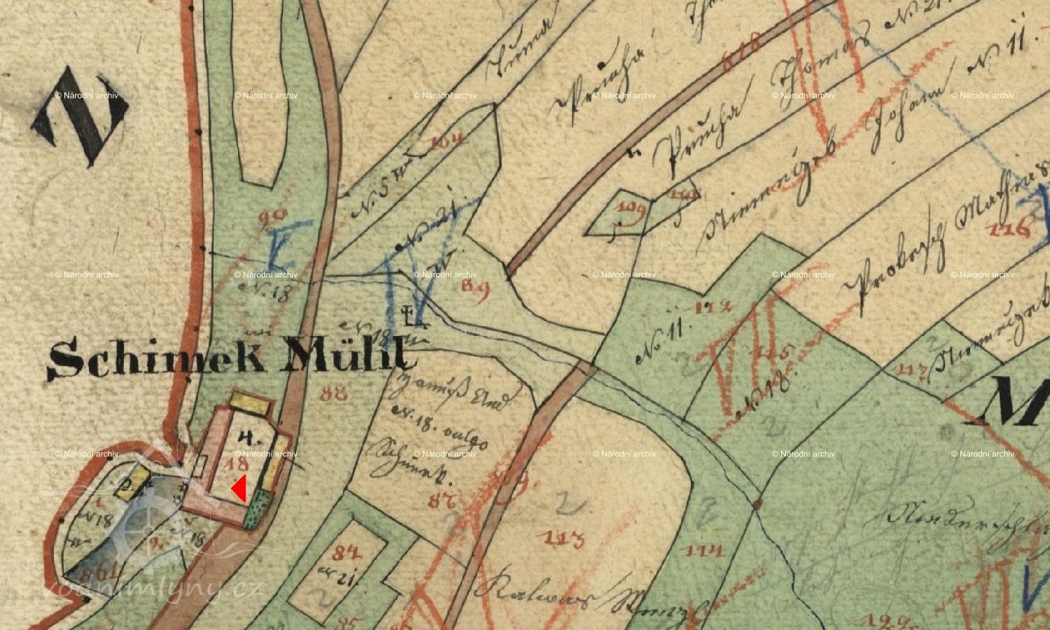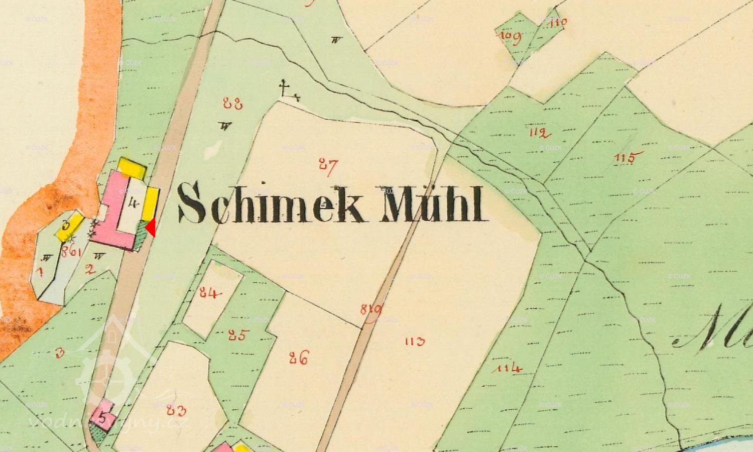 Majitelé usedlostí v r.1713: č.18 – Matěj Šimek, mlynář, 22 strychů 1 věrtel, mlýn o 2 složeních, pilu a 4 stoupy - informace z Pamětní knihy obce