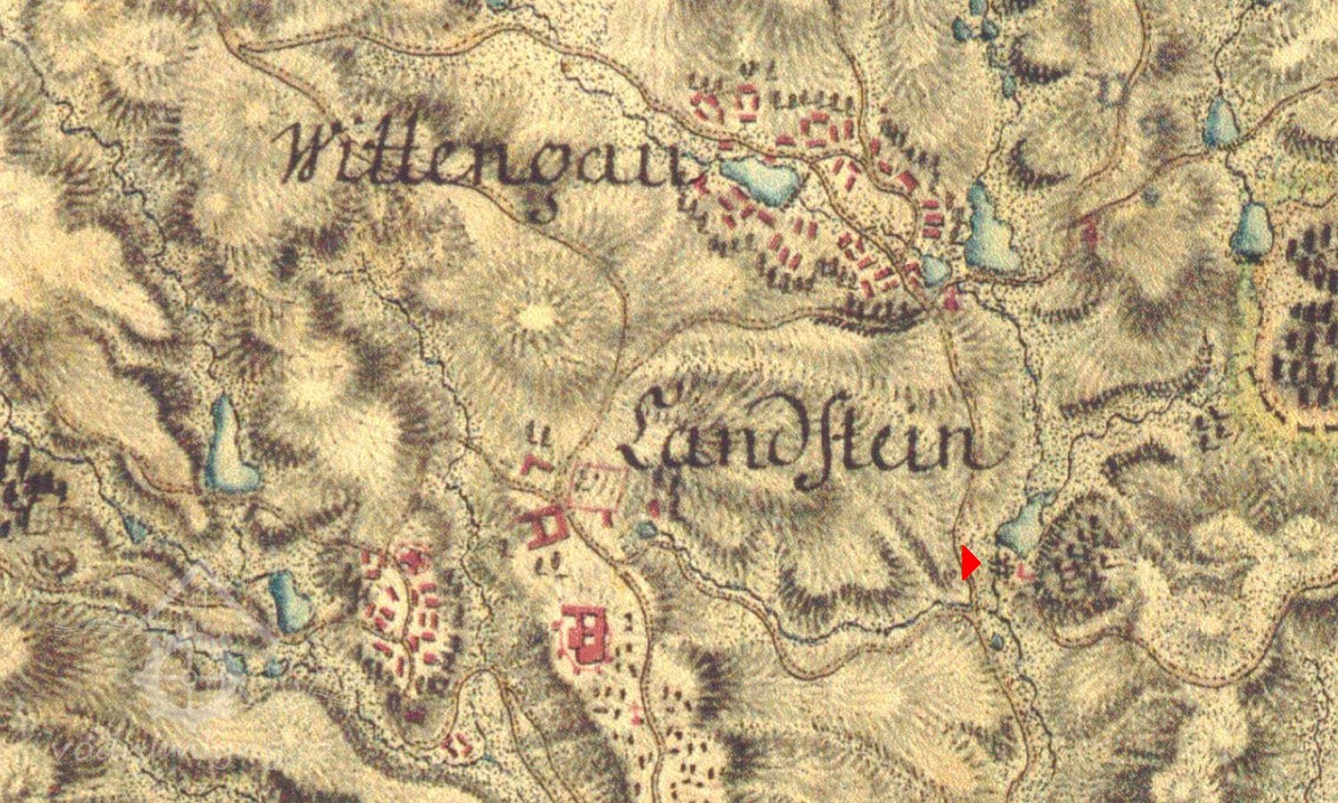 Východně od obce Landštejn pod hladinou vodní nádrže Landštejn