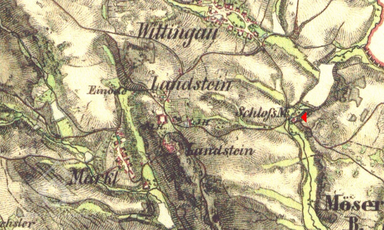 Zámecký mlýn stával na potoku Pstruhovci pod hradem Landštejnem. Po roce 1945 postupně chátral a definitivní konec pro něj znamenala výstavba přehrady Landštejn.