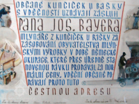 Ve válečných letech II. sv. války dokázal mlynář Bayer přes značné osobní riziko pomoci moukou mnohým občanům, zejména těm, kteří trpěli nouzí. Dodnes, jako památku na své rodiče, mají manželé Bayerovi na stěně svého pokoje zarámované uznání z června 1945, ve kterém se uvádí: „Občané z Kunčiček u Bašky s vděčností uznávají zásluh pana Josefa Bayera, (n. 28. 11. 1899 + 10.9. 1976) mlynáře z Kunčiček u Bašky, za zosobování obyvatelstva v době německé okupace, které přes úředně stanovenou dávku prodával za normální cenu. Za MNV: Alois Poloch, Klement Kondys, František Carbol, Karel Vichr“.