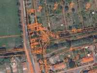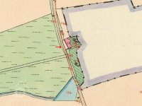 Před požárem jedna budova obdélníkového půdorysu, která stávala hned za potokem a mlýnské kolo měla na jižní straně.