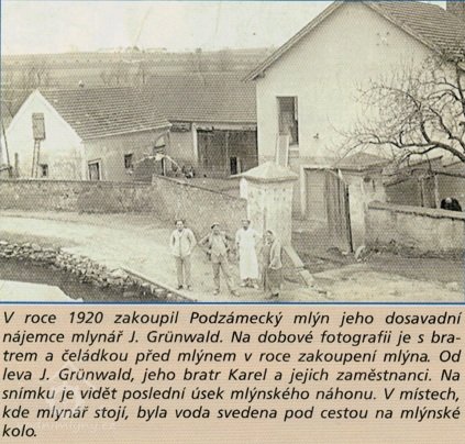 Při kontrole státní inspekcí v roce 1958 byl však bývalý mlynář zatčen a po 14. dnech byla vzata do vazby i jeho manželka. Dne 5. února 1959 proběhl v sokolovně s bývalým mlynářem a jeho manželkou „lidový soud". Mlynář a jeho žena byli obviněni z toho, že ve svém mlýně nedostatečně vnímali, co je jejich a co pracujícího lidu, státních statků a potažmo i vepřů ( bylo jim m.j. dáváno za vinu, že do pytlů dávali jen 49 kg šrotu místo 50). Rozsudek je zachycen v kronice a zněl: „Pan Josef Griinwald odsuzuje se: K 10 letům žaláře, ztráty čestných práv občanských a po odpykání tohoto trestu nesmí 3 roky na okres Praha-východ. Dále byl odsouzen k propadnutí veškerého jmění v hotovosti i na knížkách, které byly nalezeny připíchnuté pod stolem, a k finanční náhradě státnímu statku ve výši 41.440,90 Kčs."