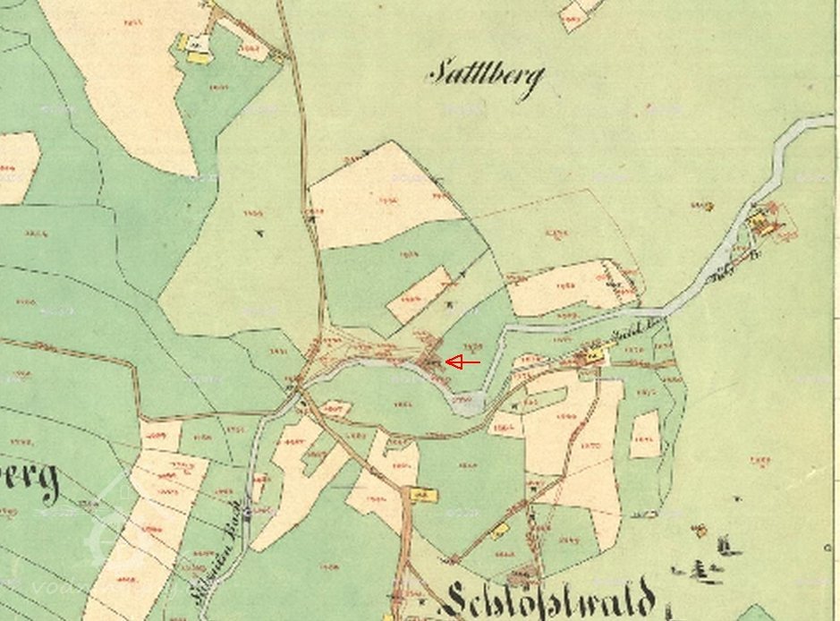 V Seznamu vodních děl republiky Československé je jako majitel mlýna a pily "Sedlo 65" v roce 1930 uveden Karel Joachimsthaler, Hrádecký potok se nazýval Kaltenbrunbach nebo Stillseifenbach.