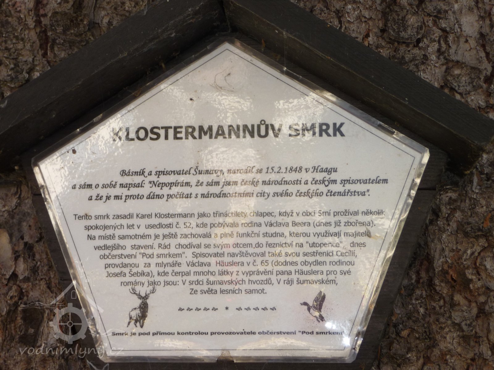 V 70. letech 19. stol. do mlýna docházel za svojí sestřenicí Cecíliií Häuslerovou spisovatel Karel Klostermann, který z vyprávění jejího manžela Václava Häuslera čerpal látku pro své romány a povídky (V srdci šumavských hvozdů, V ráji šumavském, Ze světa lesních samot...).