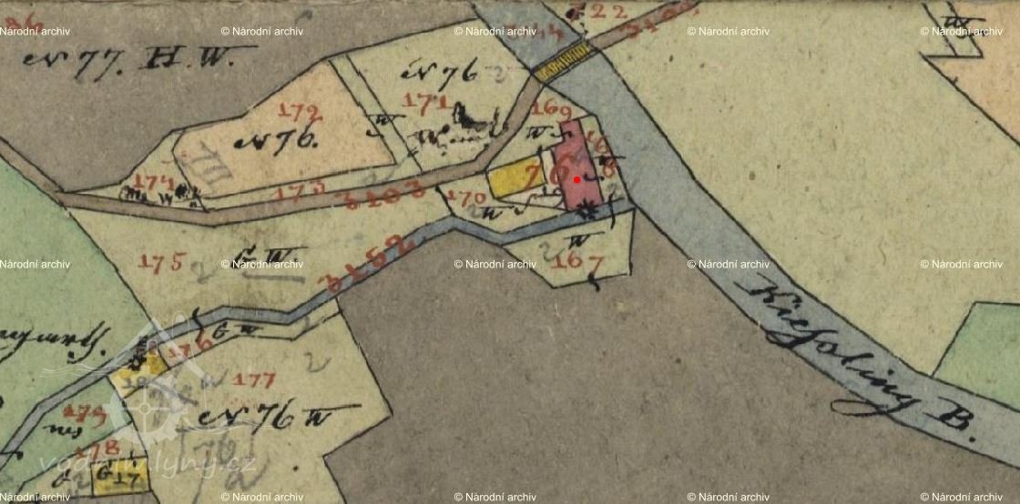 Mlýn je zachycen již na mapě I. voj. mapování.