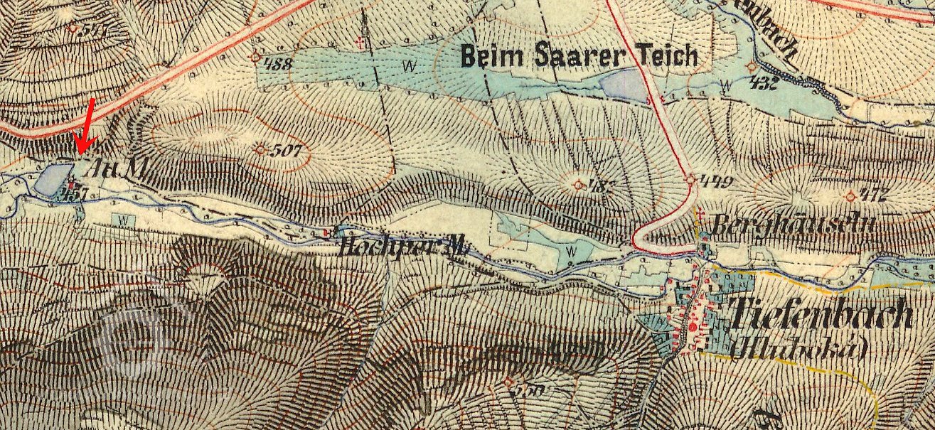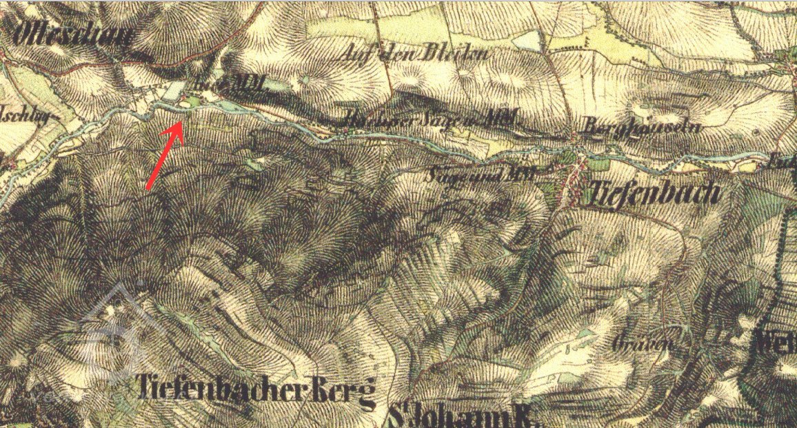 Mlýn se nacházel asi 2 km západně od zaniklé obce Hluboká.