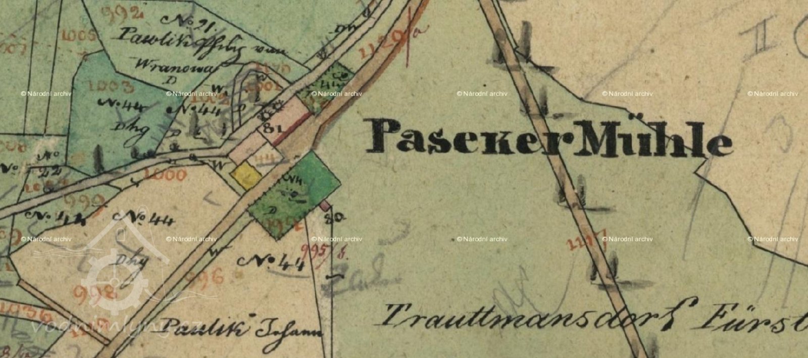 Císařský povinný otisk, výřez, 1838, © viz archivnimapy.cuzk.cz